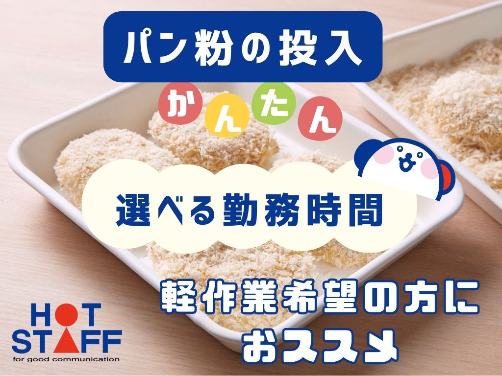 選べる時間帯|シンプル作業を極める!一人作業が苦にならない・コロッケ製造ラインでパン粉の補充だけ