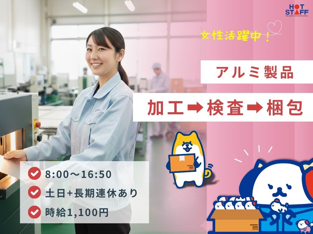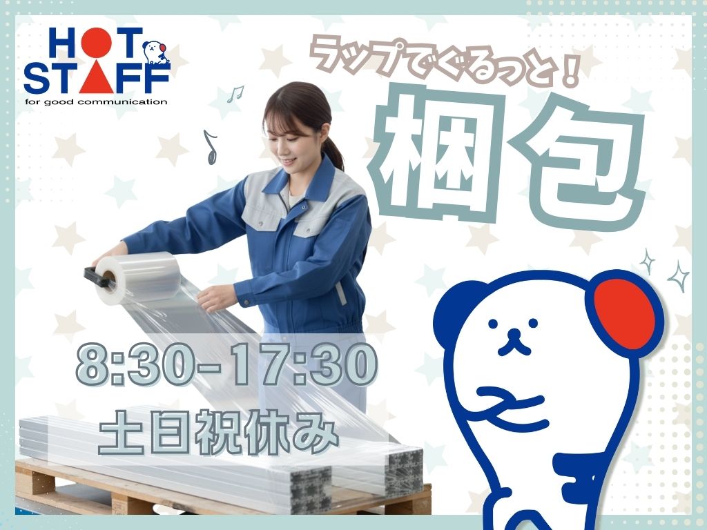日勤・土日休み|重量物ナシ♪基本1人でモクモク作業◎アルミ製品をぐるっと梱包する軽作業!