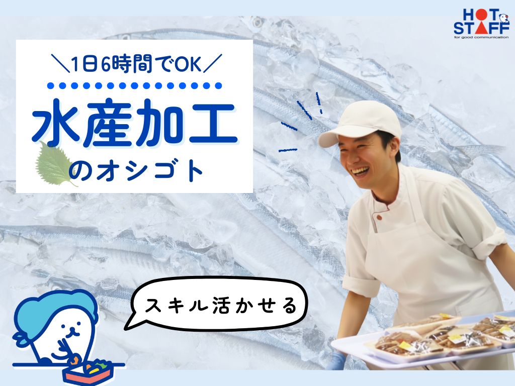 <駅近く★>8:00~15:00|週4~OK|スキルが活かせる!スーパーでお魚のカット加工☆