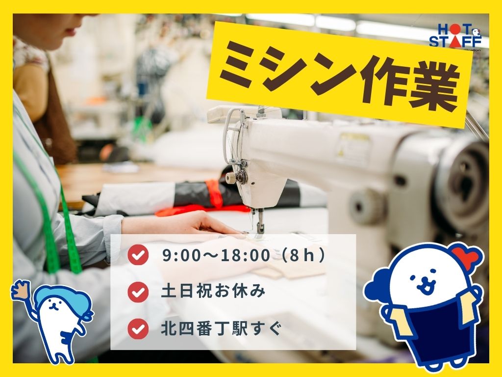 駅近く☆趣味・スキルが活かせる!日勤×土日祝休み|座ってミシンを動かす裁縫作業♪