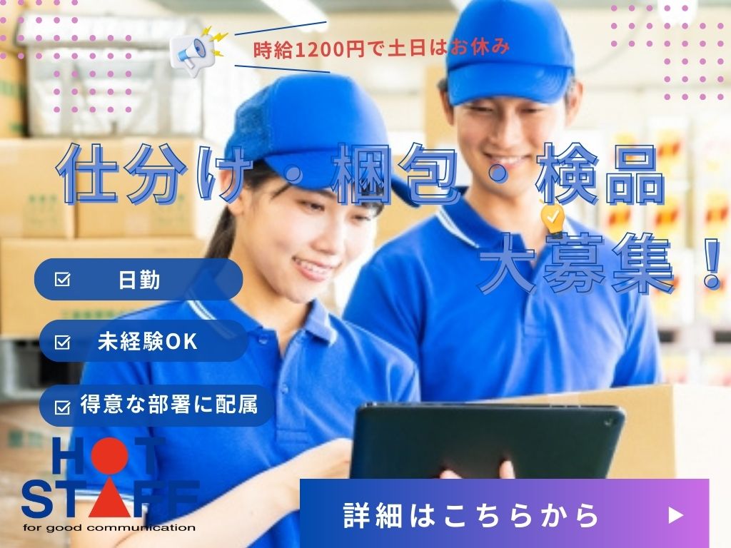 日勤|土日祝休みでメリハリ◎時給1200円のコツコツ梱包★立ち作業だから時間が早く感じる!