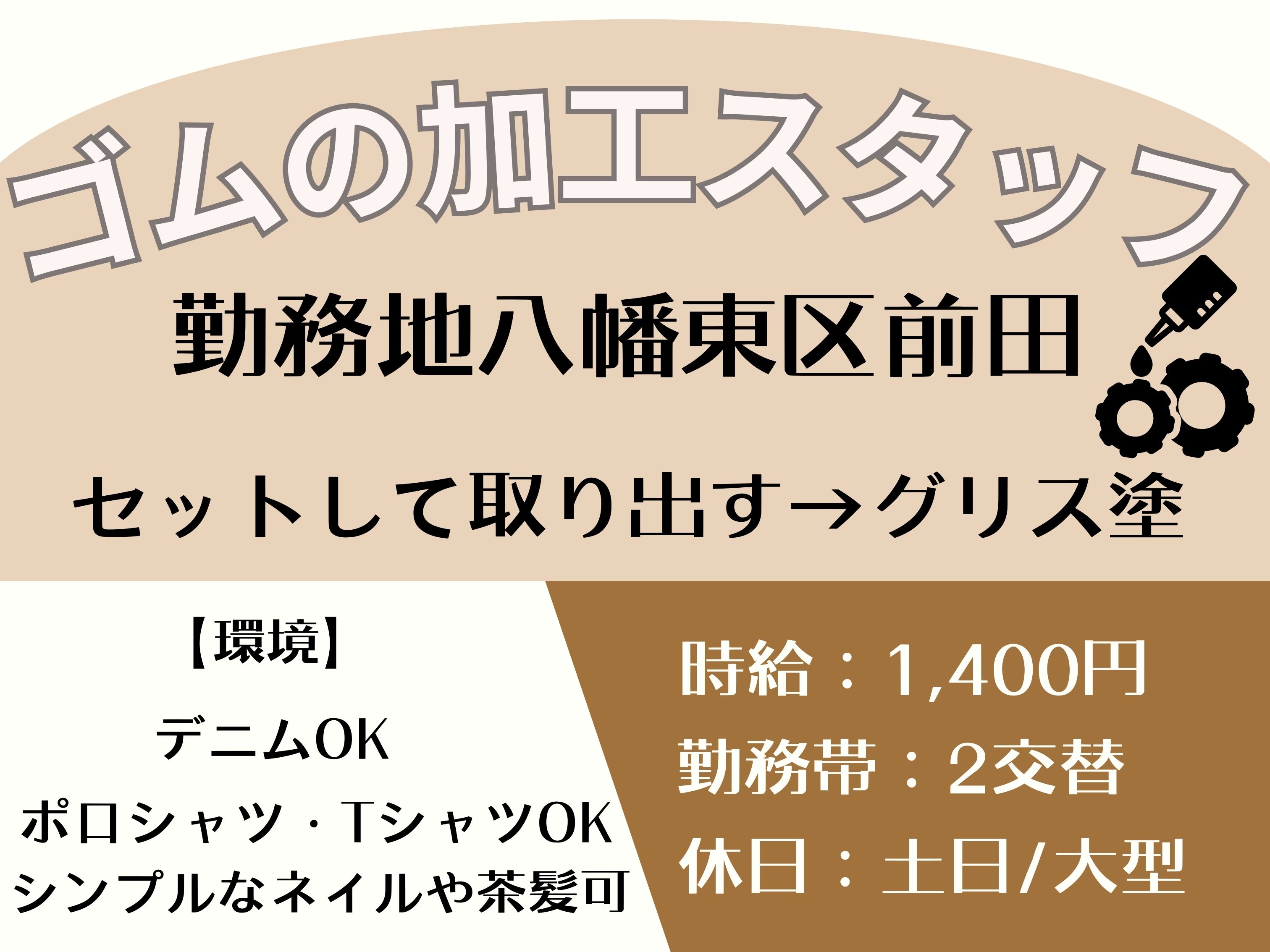 <鹿児島本線・八幡駅から車で7分>ゴム製品にグリス塗り・準夜勤の2交替制(朝6:25~夜17:00~)