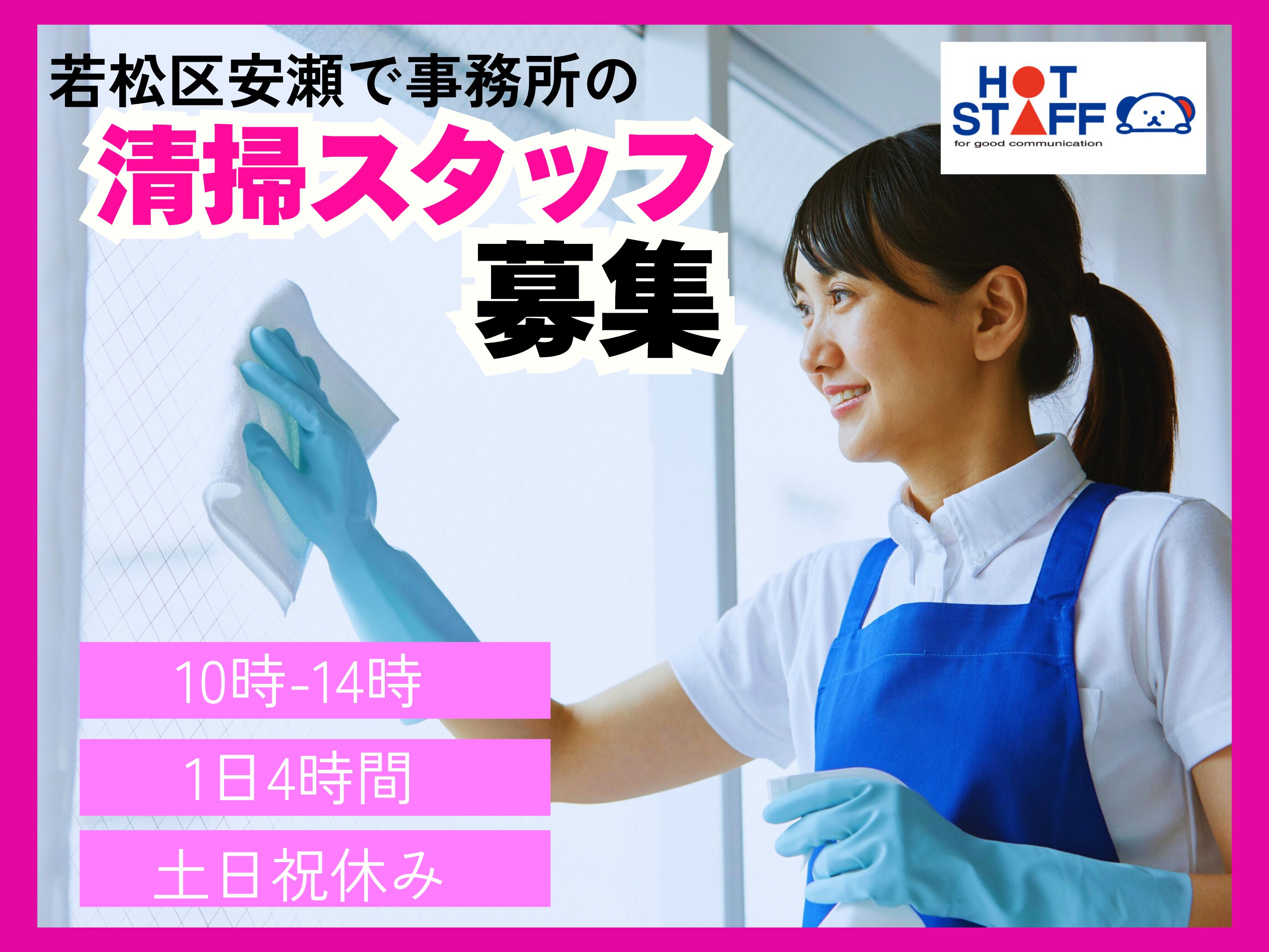 若松区安瀬/朝10-14時までの4時間短時間!土日祝完全やすみ/会社内の清掃スタッフ募集