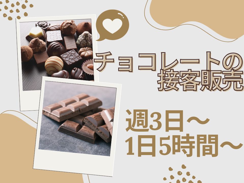 週3~OK!チョコレートに囲まれてオシゴト♪お菓子やケーキの販売/箱詰めや梱包!勤務時間相談OK