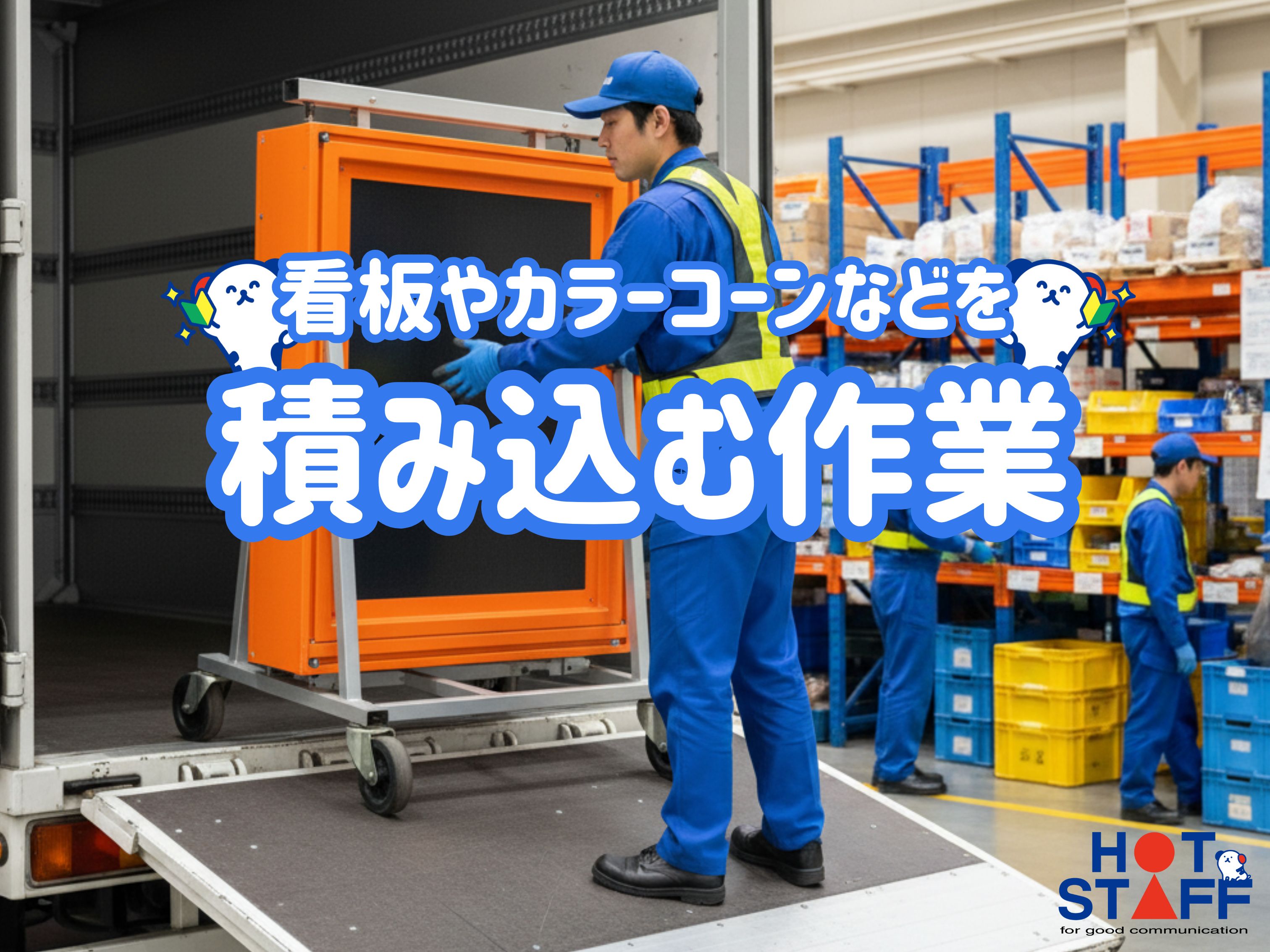 人気の土日祝休み!日勤のみ・高時給1,300円!工事現場にある看板やカラーコーンをトラックへ乗せる◎