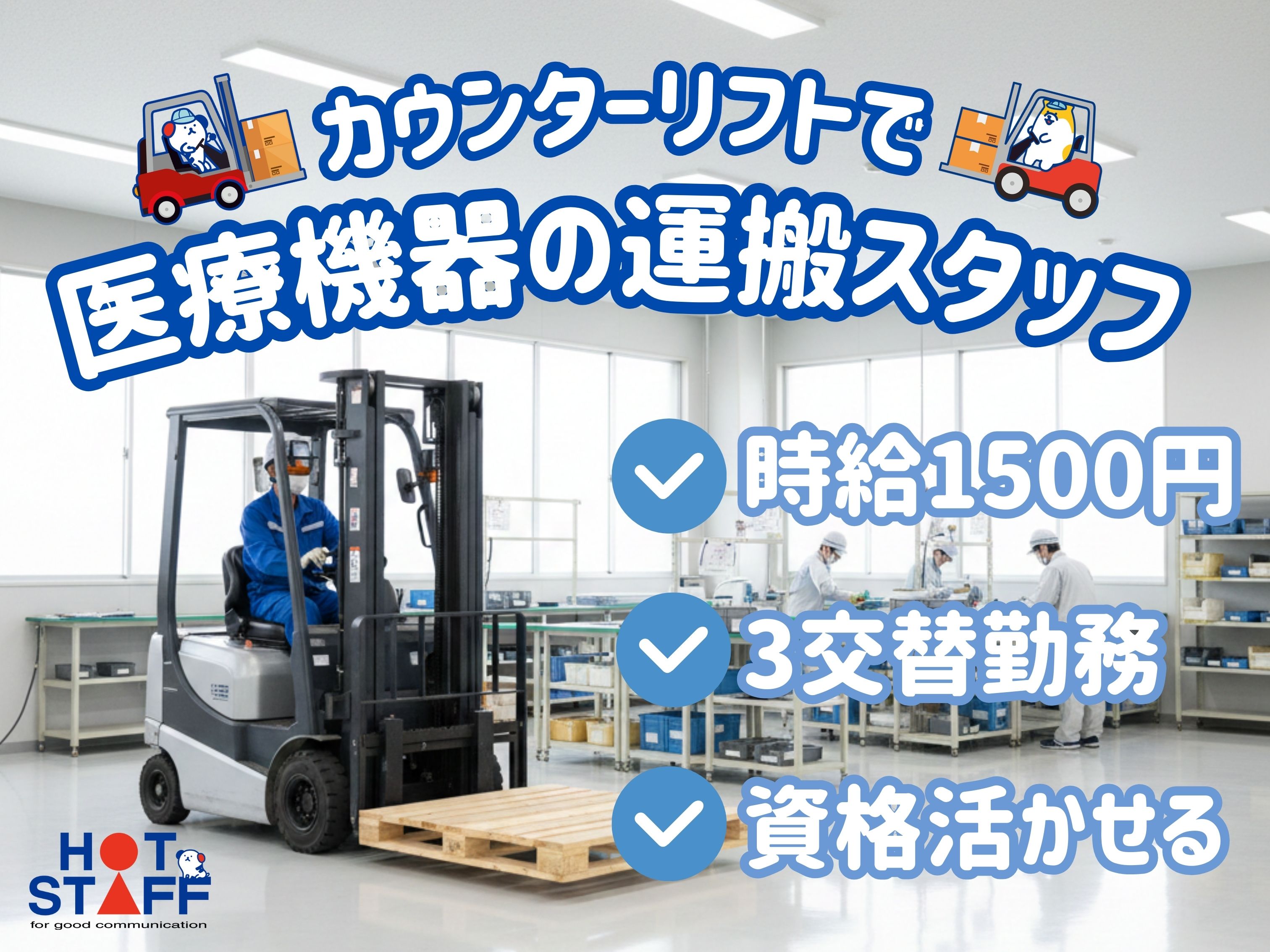 【ブランクOK】丁寧な研修あり★医療機器メーカーで安定◎カウンターリフト免許を活かして高収入GET!