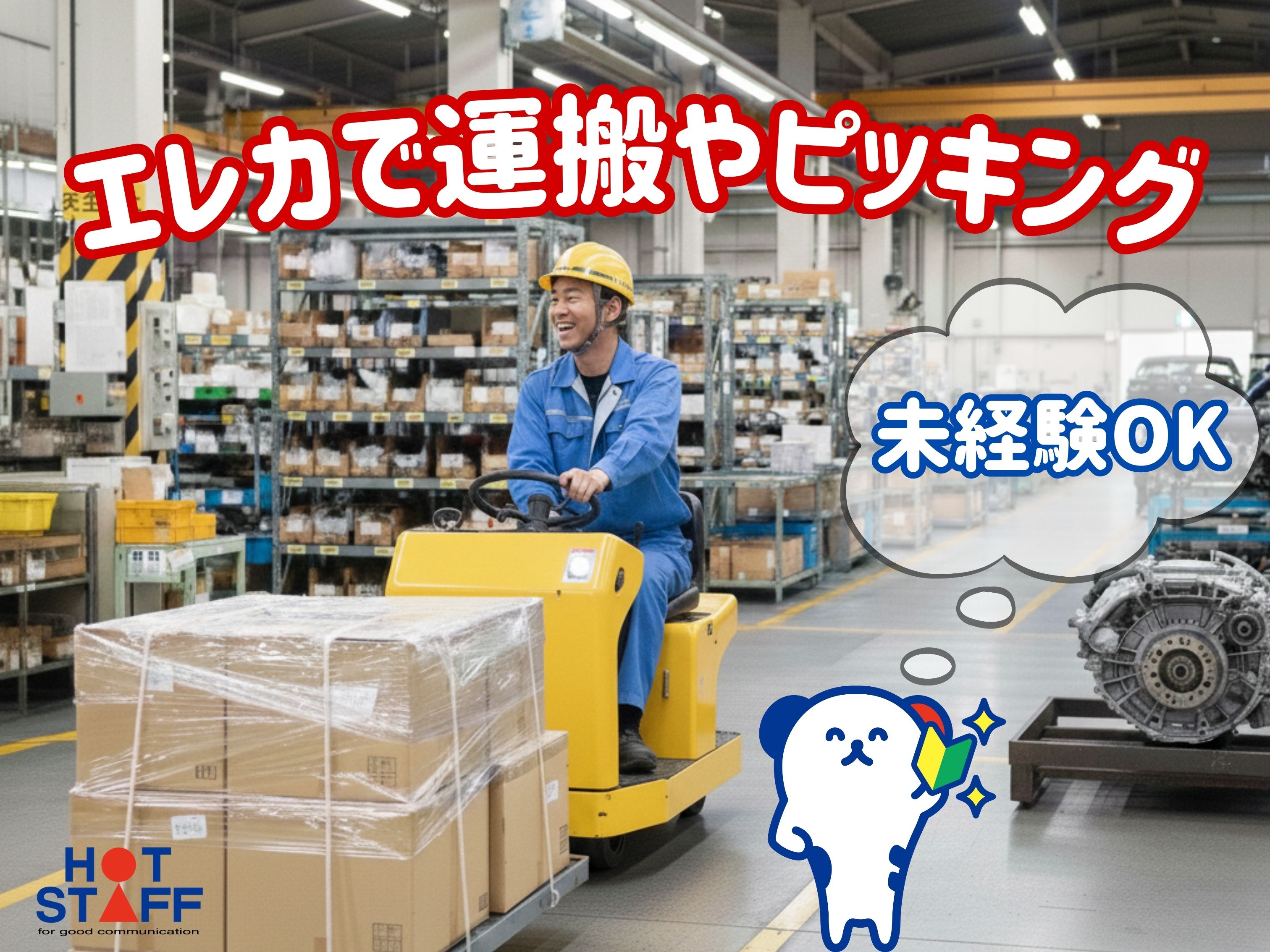 時給1300円!土日休み◎未経験歓迎!免許不要の小型電動車で部品を運んだりピッキング作業★