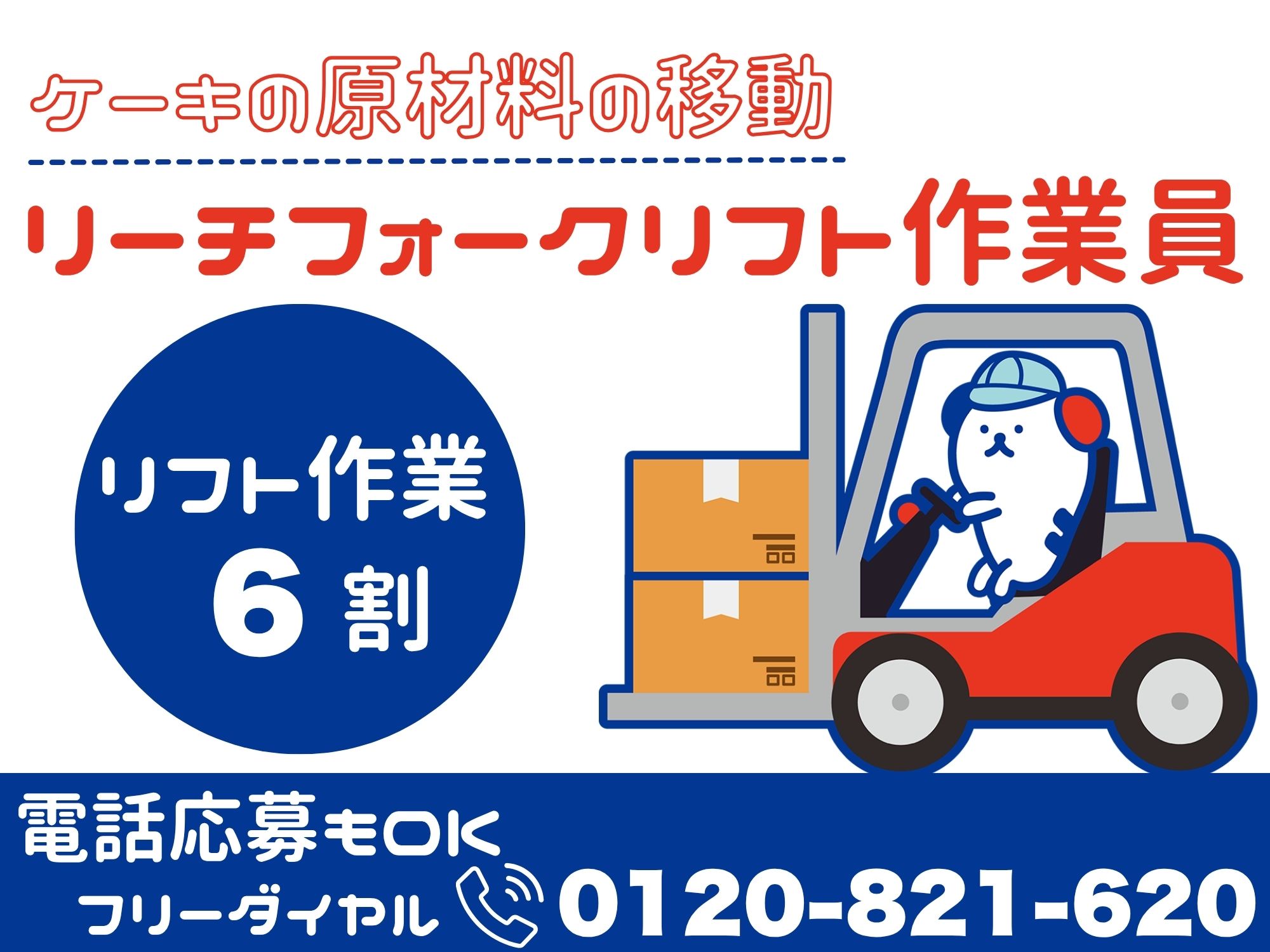 【リフト作業6割!】リーチリフト使用☆空調完備☆シフト制/入荷したケーキの材料を倉庫へ収納♪