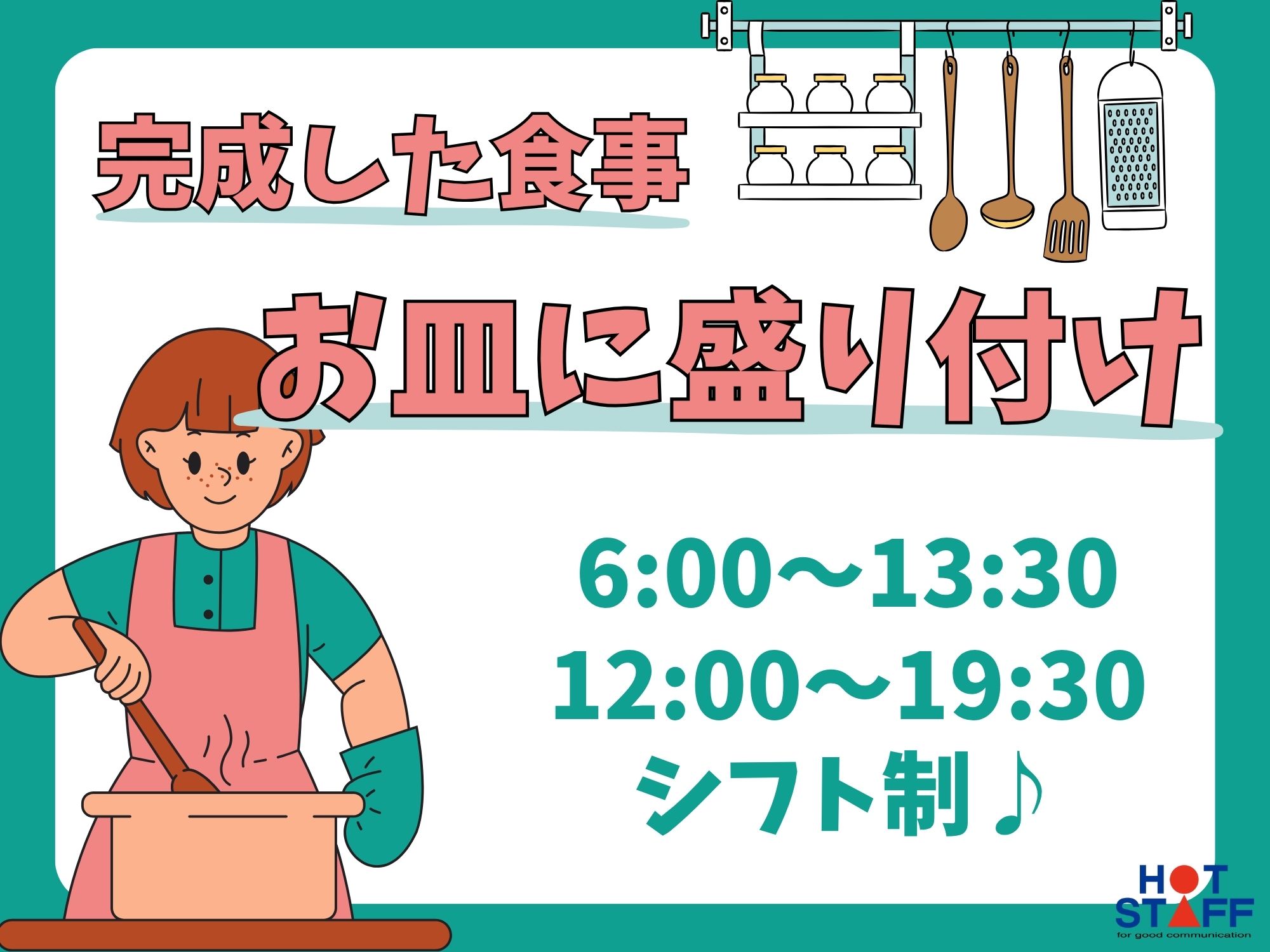 短時間で稼げる高時給☆シフト制/出来上がった食事を盛り付け・配膳スタッフ/50食程度