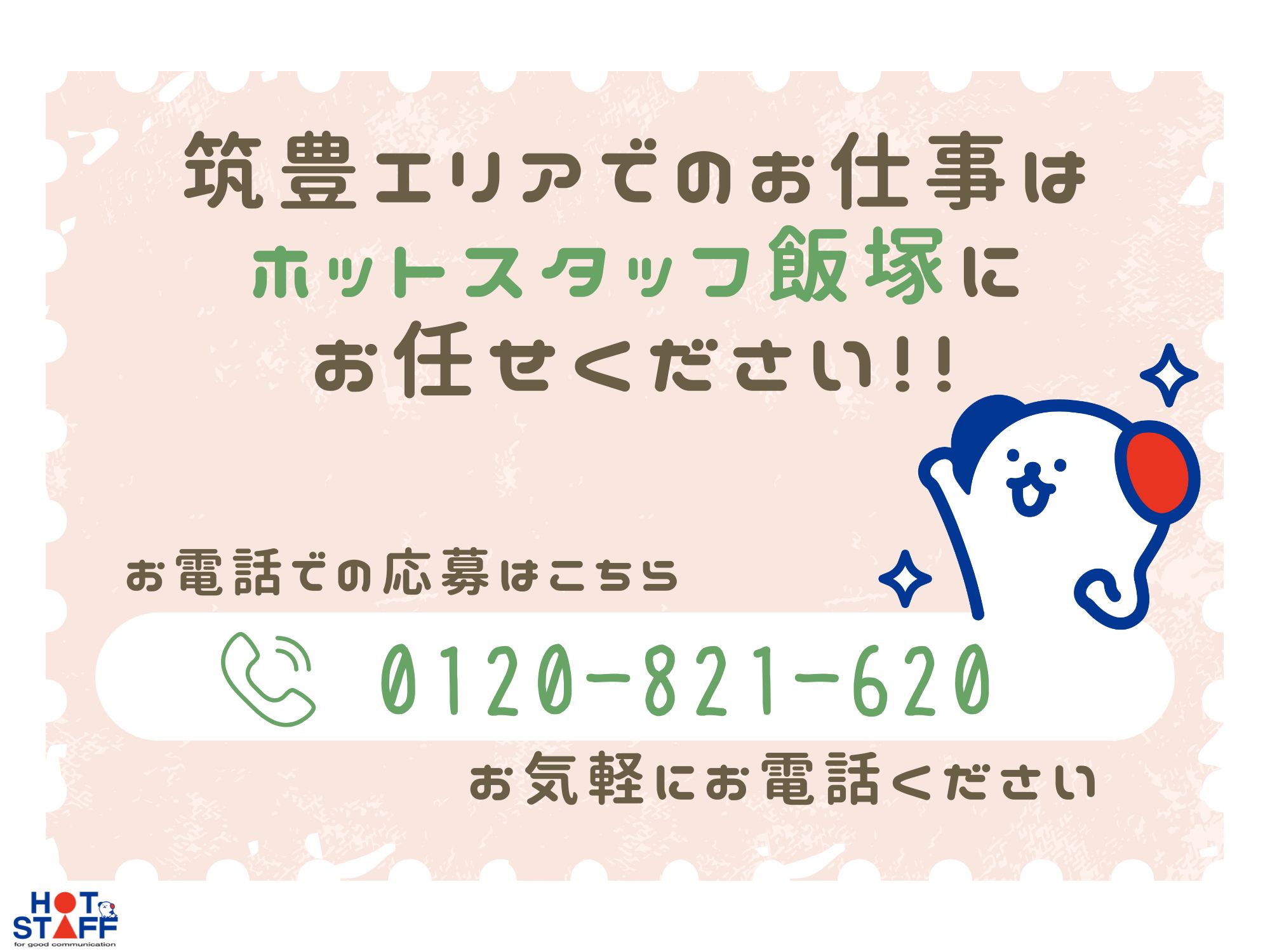 ネット応募後、ホットスタッフ飯塚から連絡致します!