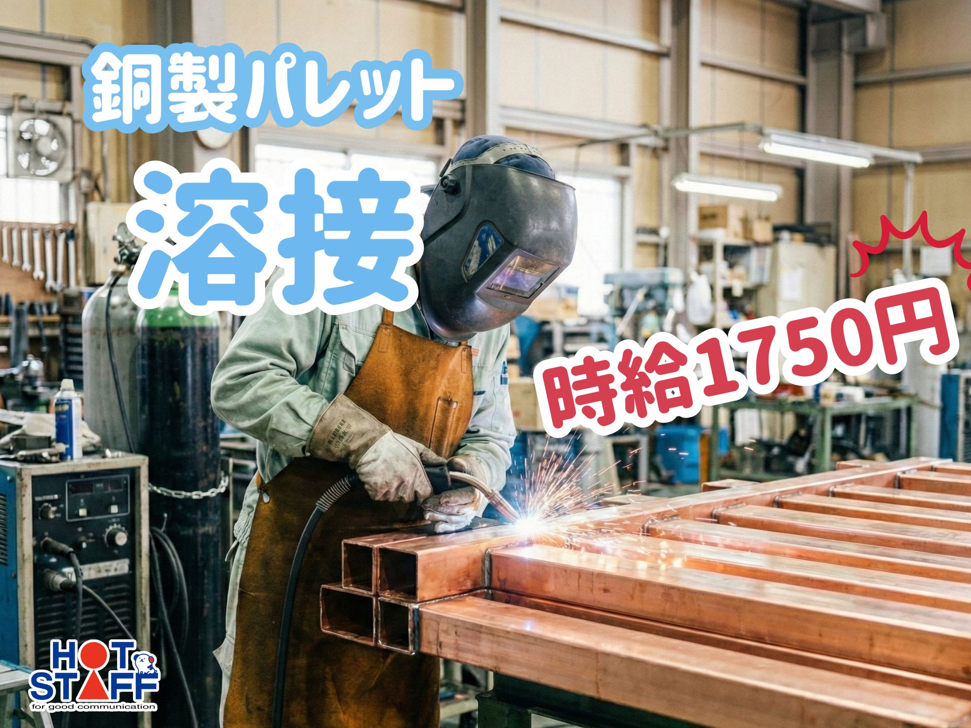 ★高時給1,750円★半自動溶接の経験活かす!銅製パレットの加工や溶接!!〈残業する・しない選べる〉