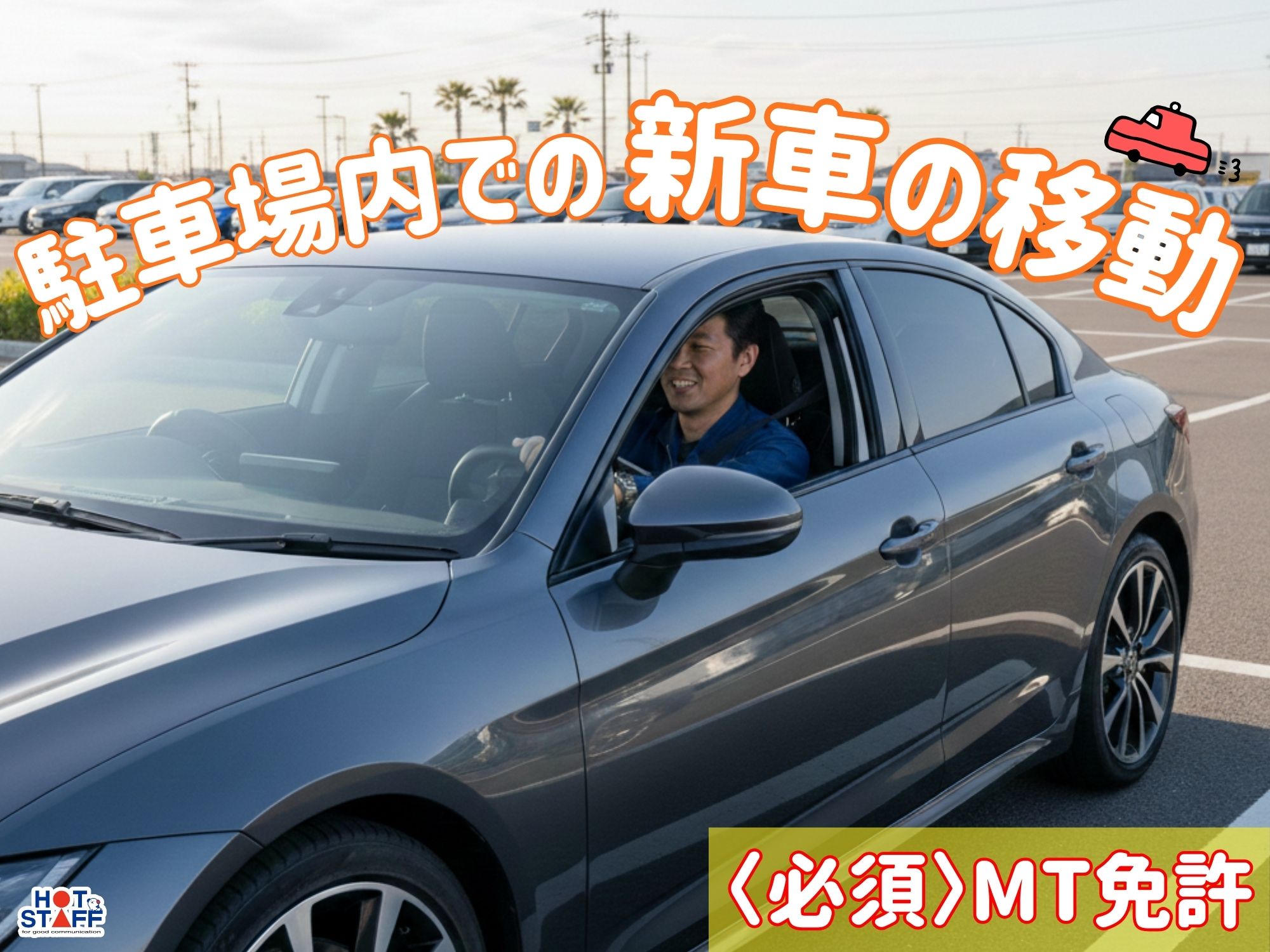 車の運転が好きな方【必見!】/土日休み・残業込みで稼げる!/駐車場内で出荷前の「新車」の移動