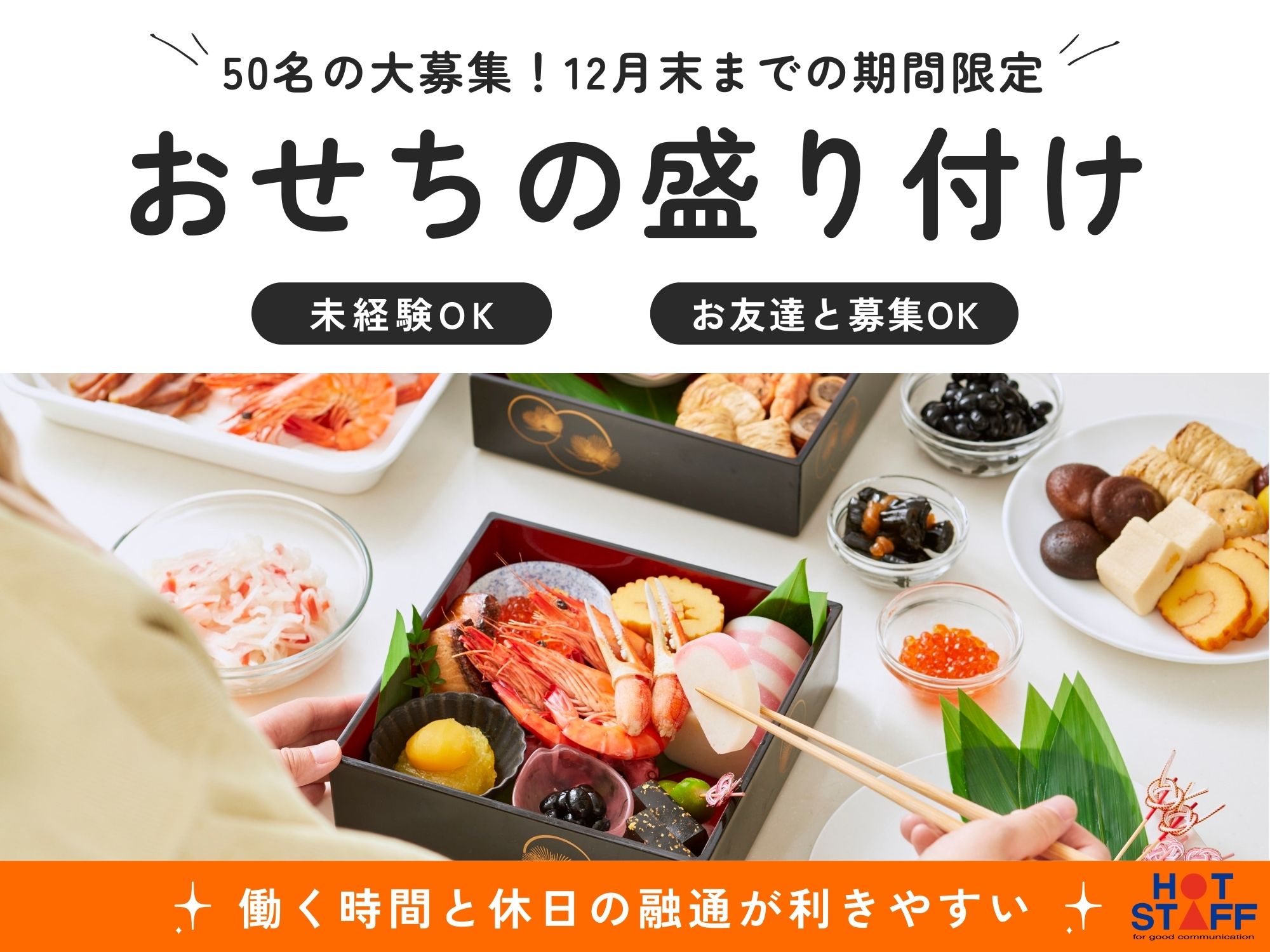 【5月末~受け入れスタート!】即日入社決定が可能◎/時間が選べる・週4日~/おせちの盛り付けだけ♪