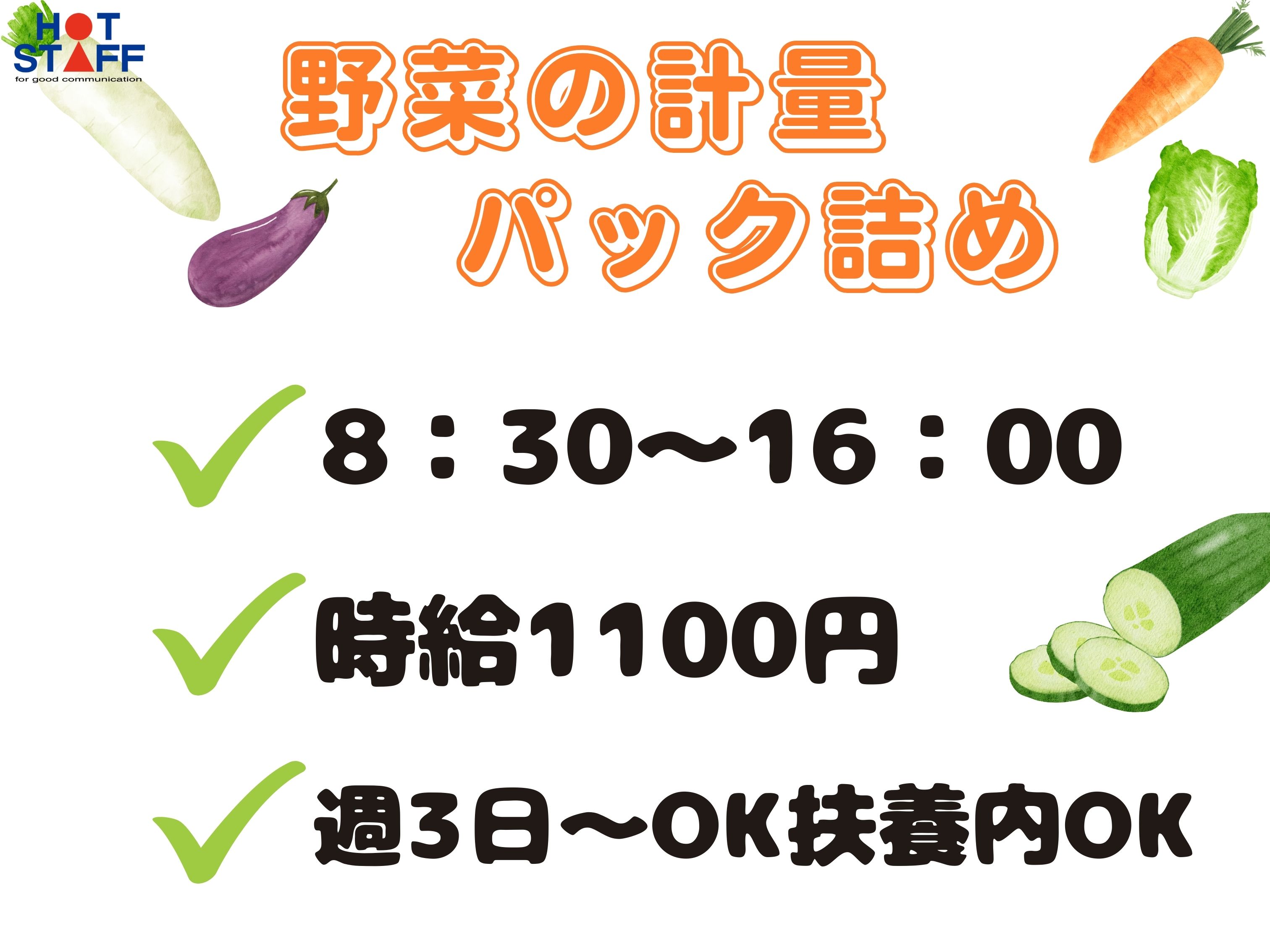 【週3日~OK・扶養内OK】シフト制/大根などの野菜を計量→パックに詰める!