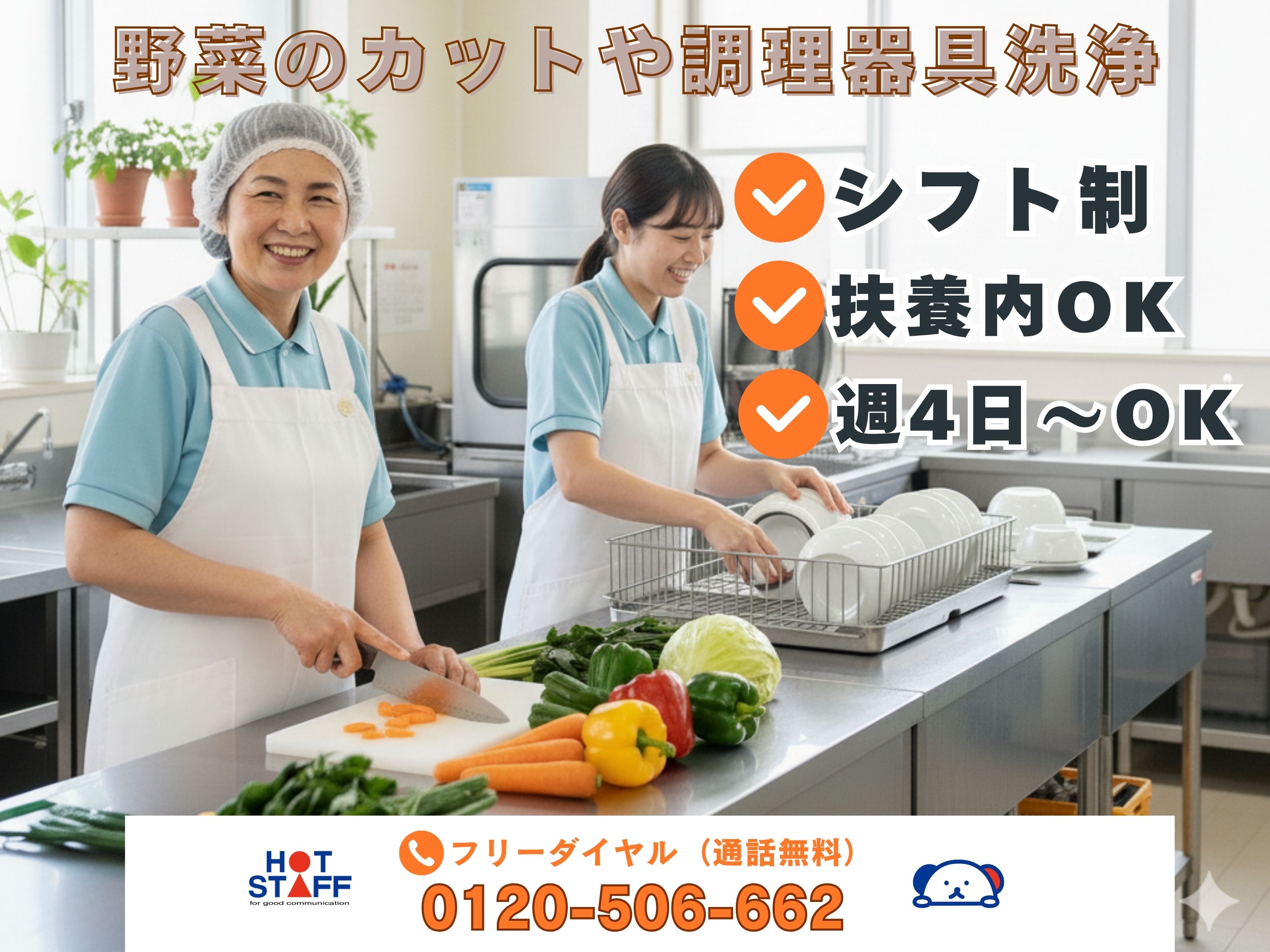 未経験からチャレンジOK◎野菜をカット♪ゆでたり♪調理補助スタッフ/シフト制/【空調完備】