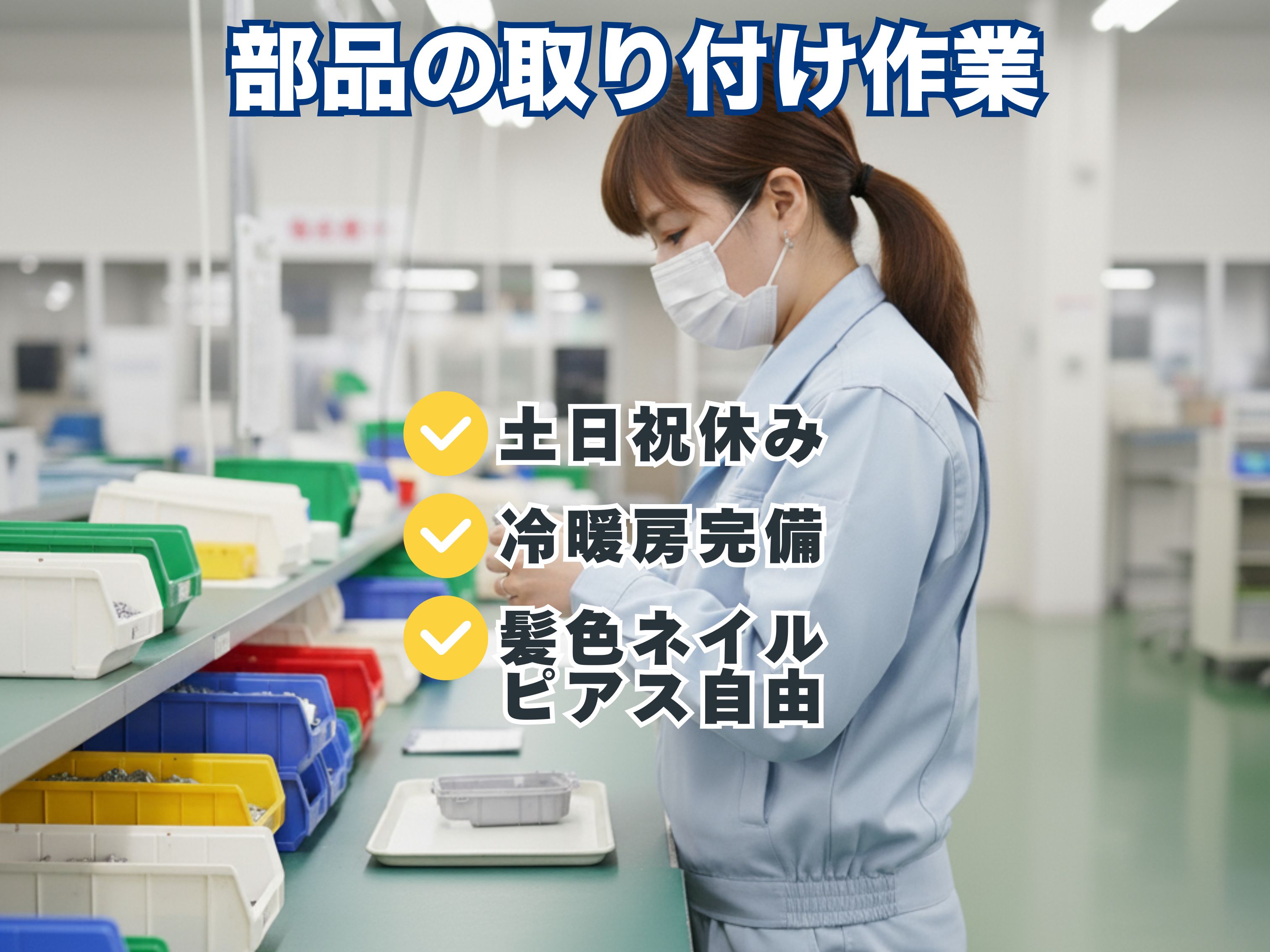 【土日祝休み・冷暖房完備・重量物ナシ】髪色・ネイル・ピアス自由♪部品をカチッと取り付ける作業♪