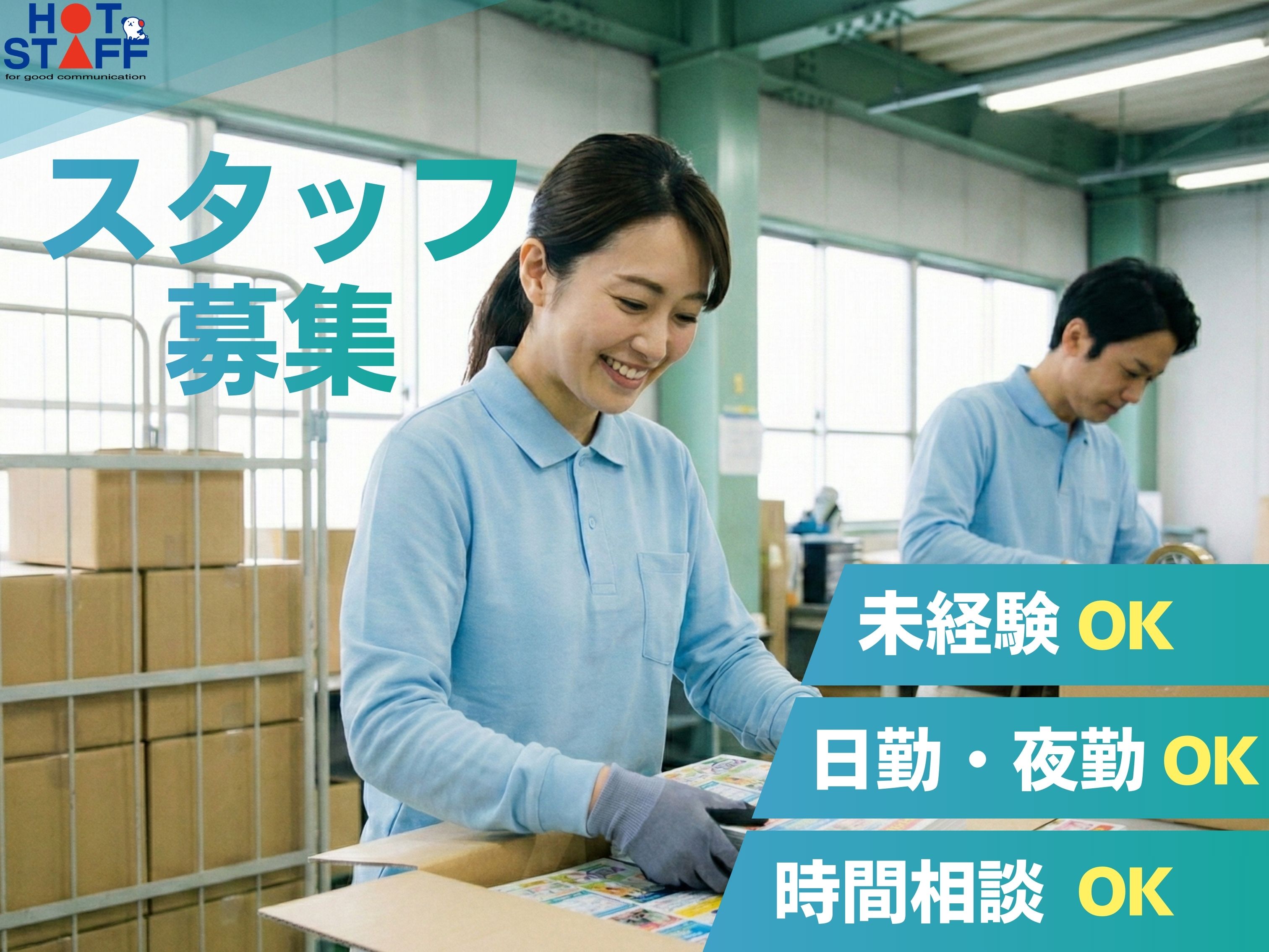 月収26万円!日勤・夜勤選べる/シフト制/ポチッとボタンを押してチラシ梱包作業!〈小倉南区〉