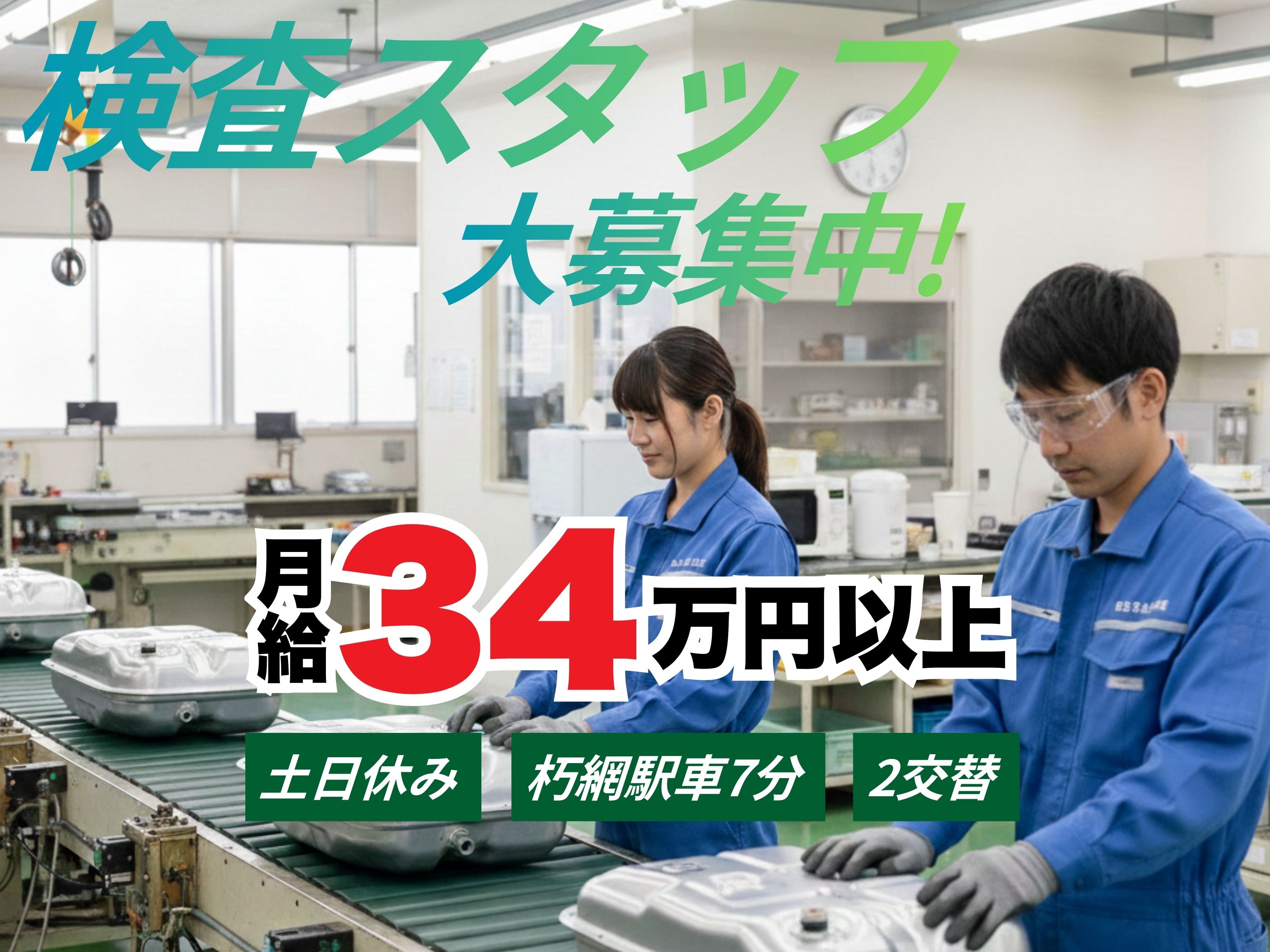 月収34万円以上可★土日休み・2交替/部品が取り付けられているかチェック〈小倉南区〉