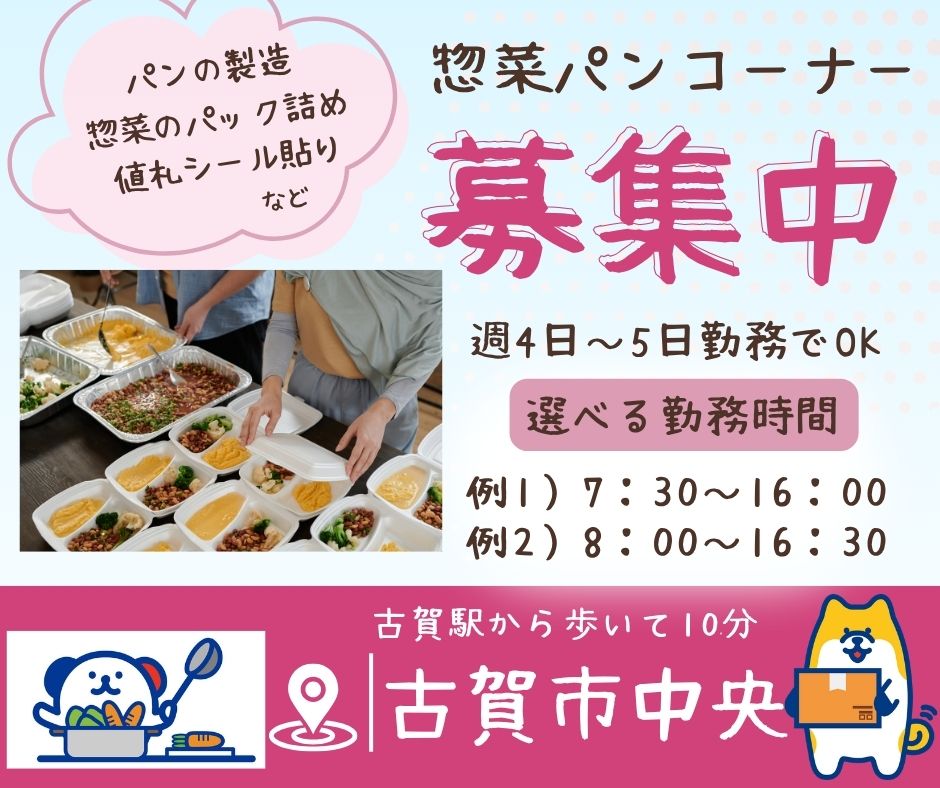【週4~OK】古賀駅から歩いて10分・スーパーで惣菜やパンの調理やパック詰め作業!(古賀市中央)