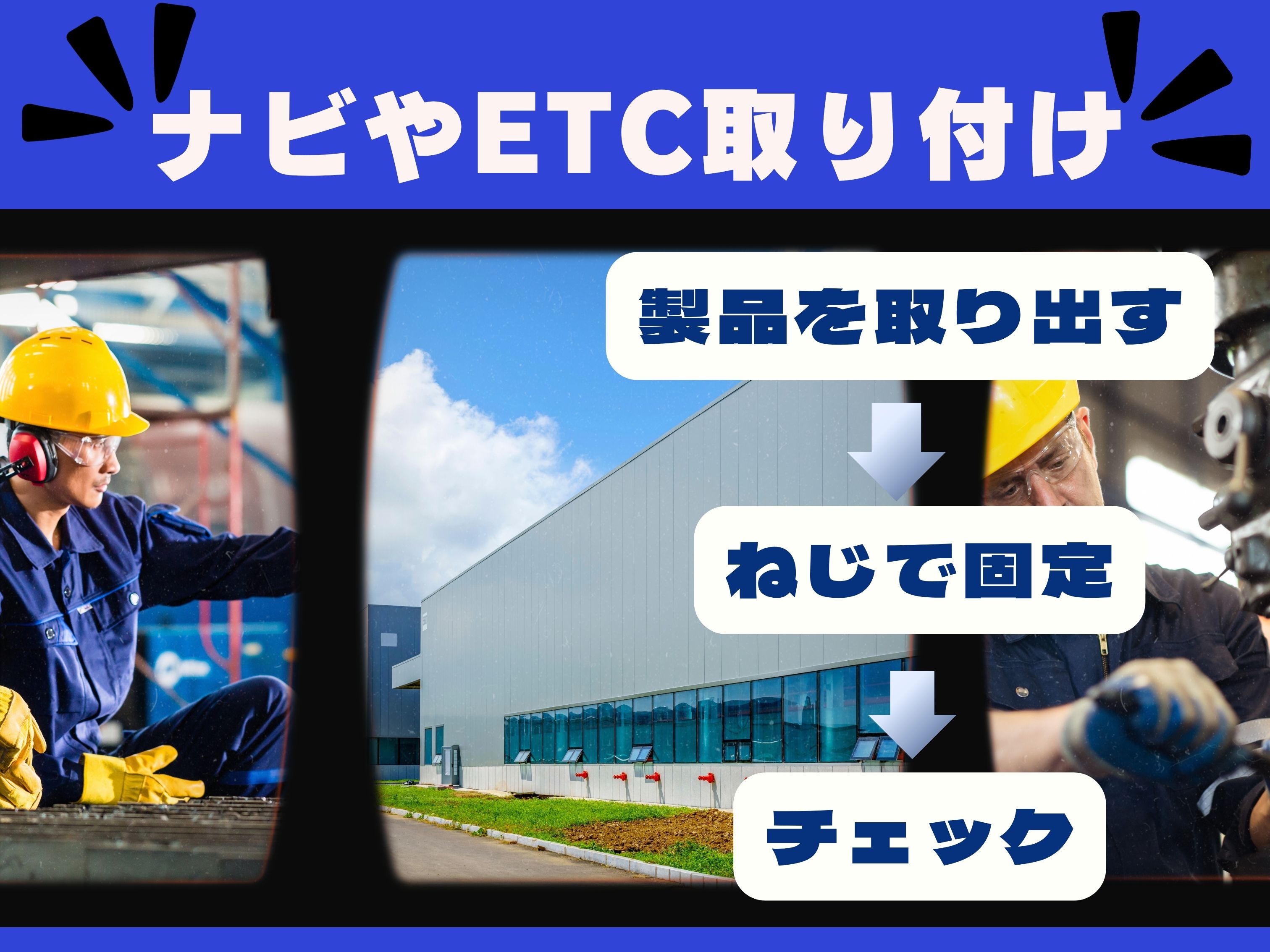 土日休み・高時給1300円・未経験OK!9時スタート・指示書を見てナビやETC器具の取り付け作業