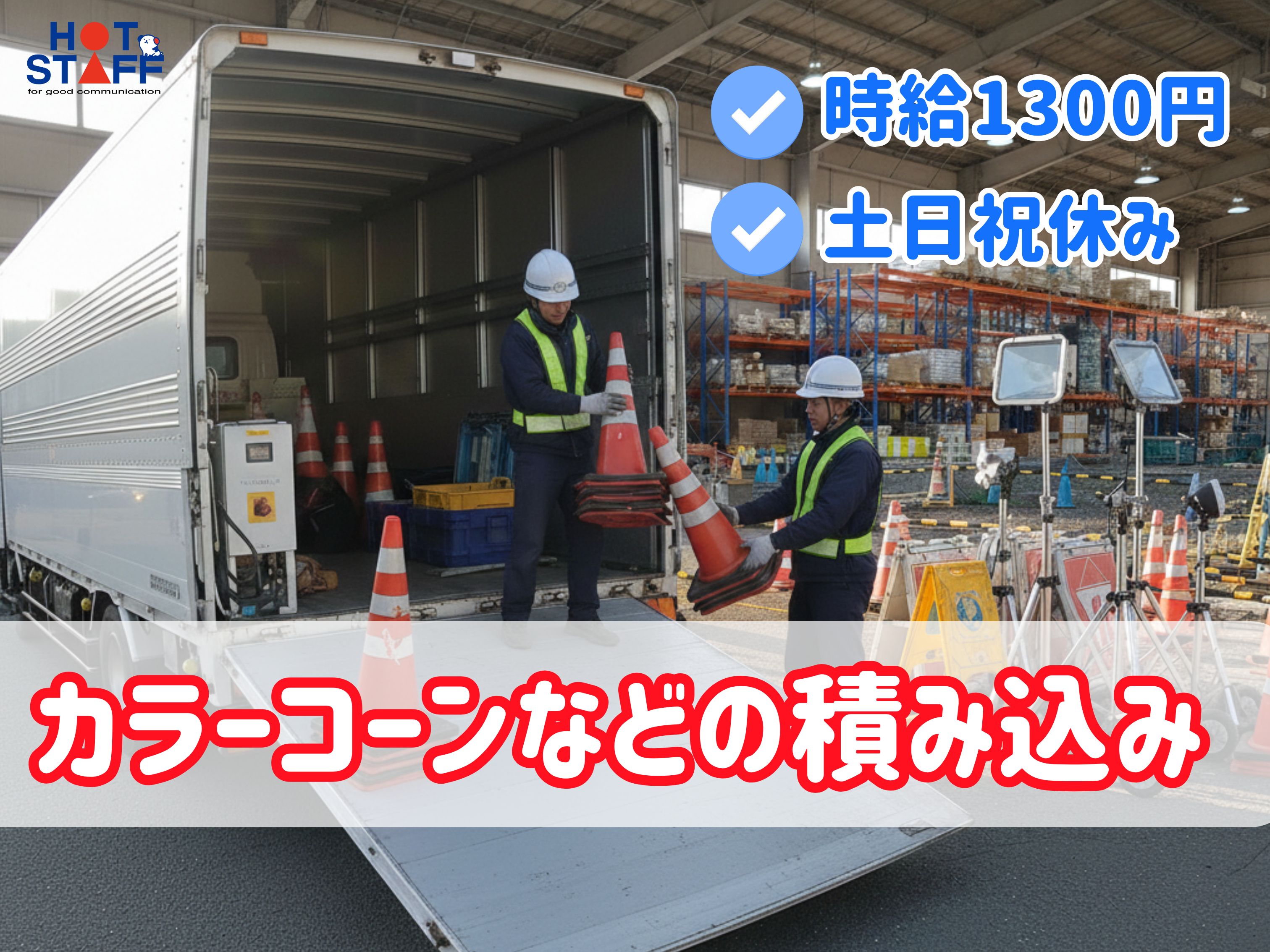 土日祝休み◎重たい移動はキャスターにお任せ★パワーゲート使用して看板などの積み込み!未経験OK!