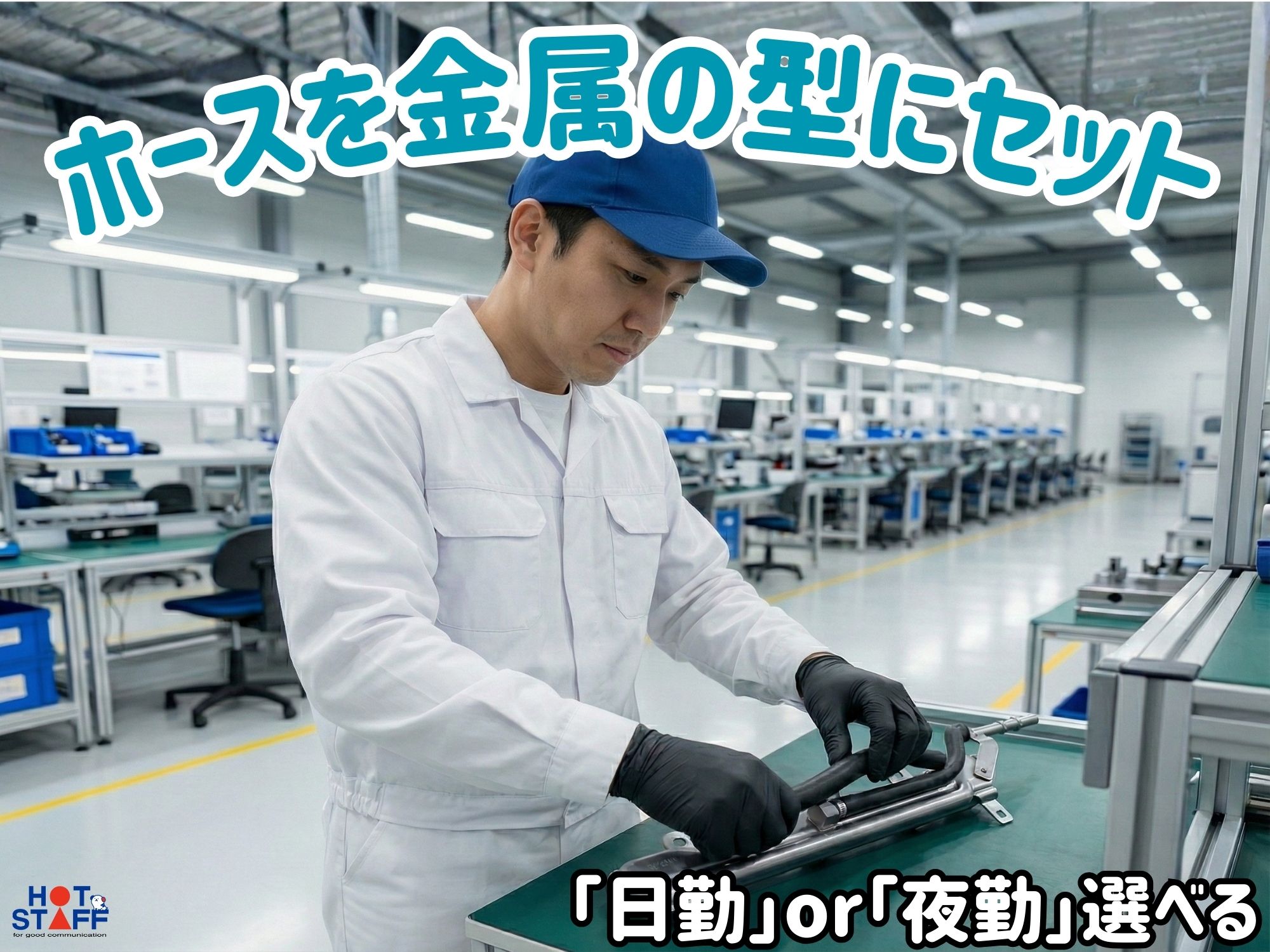 「日勤」or「夜勤」選べる/重量物なし♪土日休み/ホースを金属の型のセット→フックに吊るすだけ♪