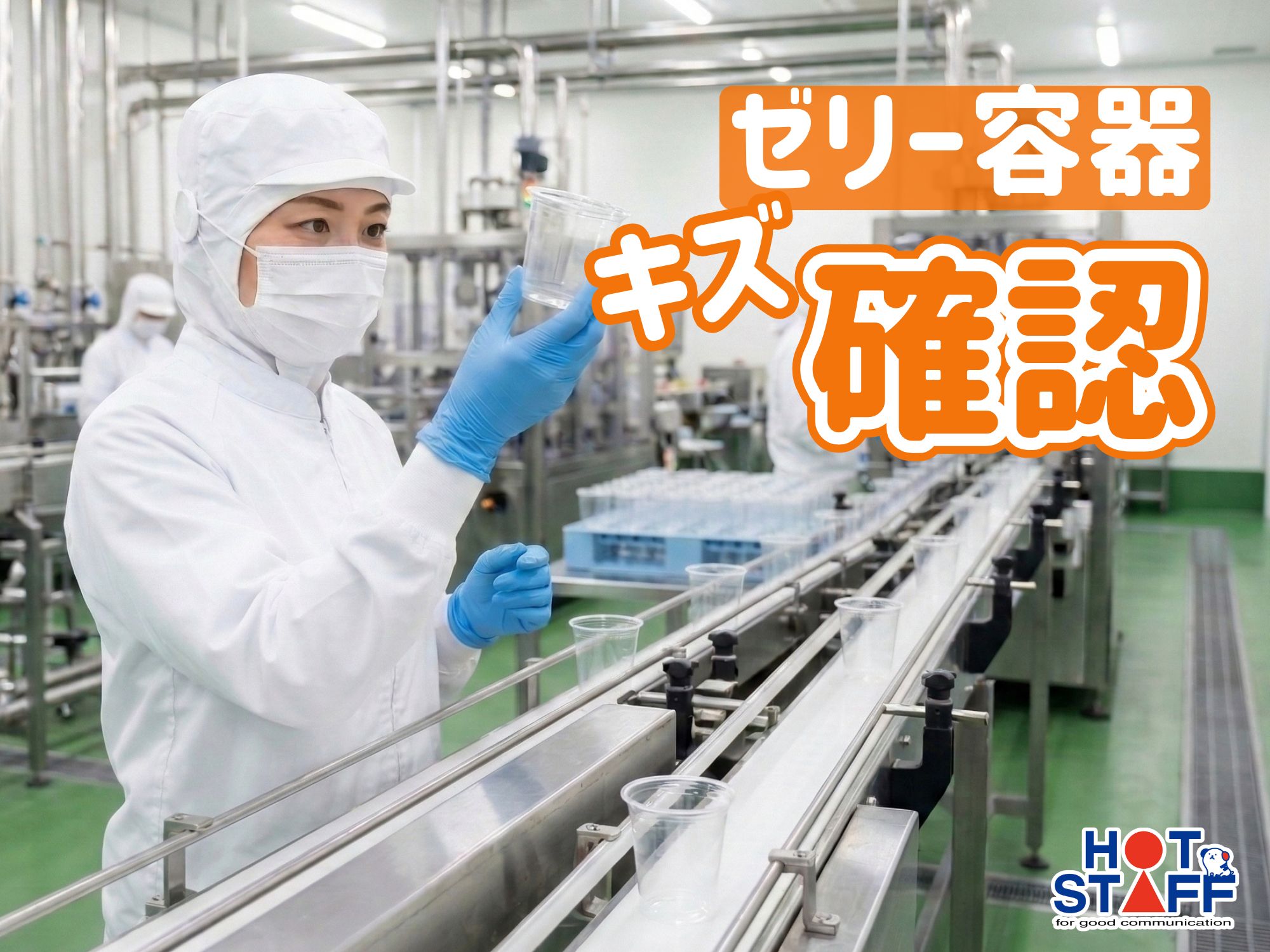 重いモノなし!軽いゼリー容器などの『キズ確認!』/無料ドリンクバーあり/日勤・夜勤選んでOK◎