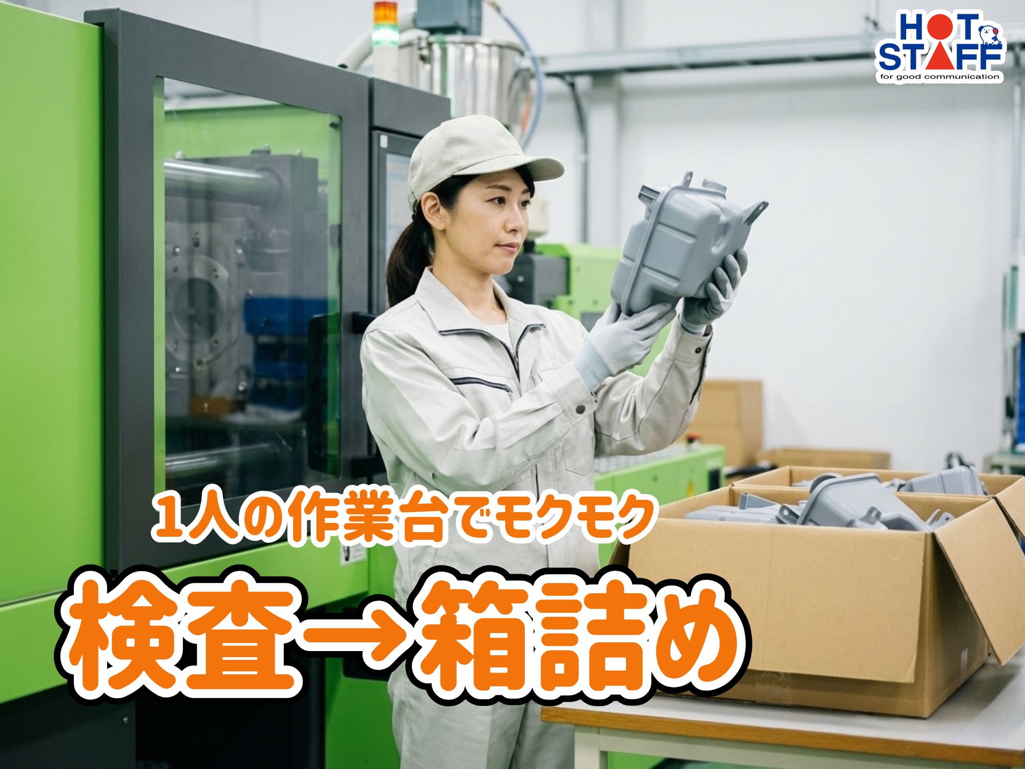 【飯塚市】かんたん軽作業♪/ひとりでモクモク・駅近く!/かる~いホースのような部品の目視チェック