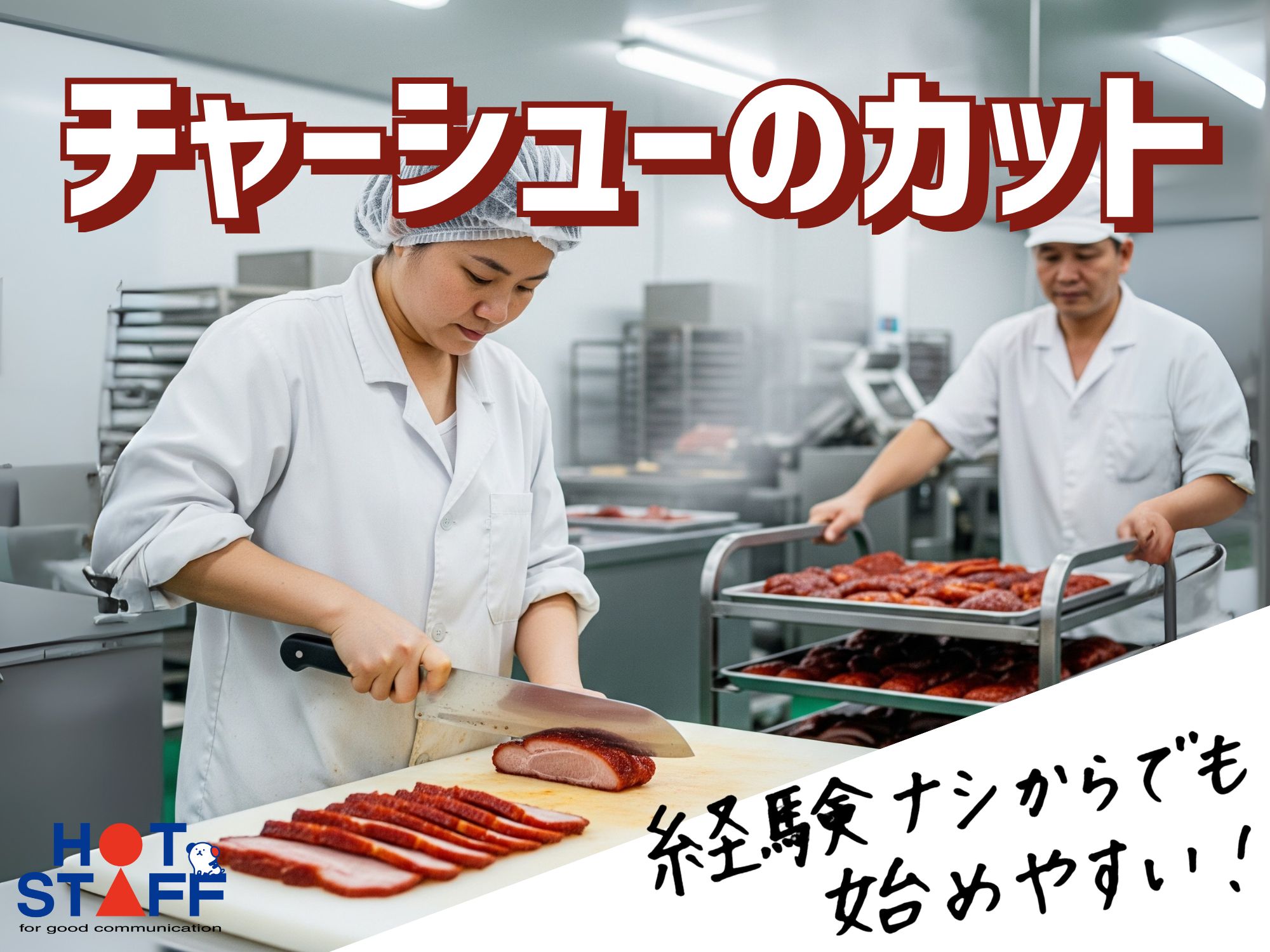 選べる時間/かんたん軽作業・エアコン完備★/ラーメンの食材!チャーシューを包丁で5等分にカット♪