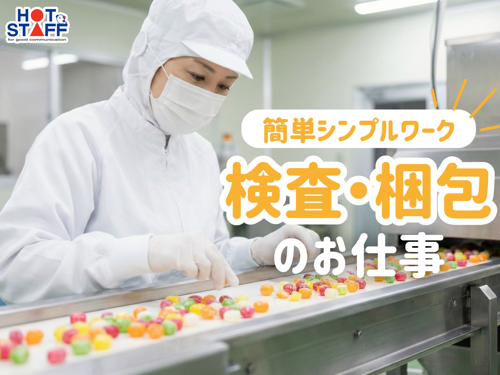 【髪色自由・ネイルOK】土日祝休み・ゆっくり9時スタート/お菓子の検査や梱包のお仕事〈未経験OK〉