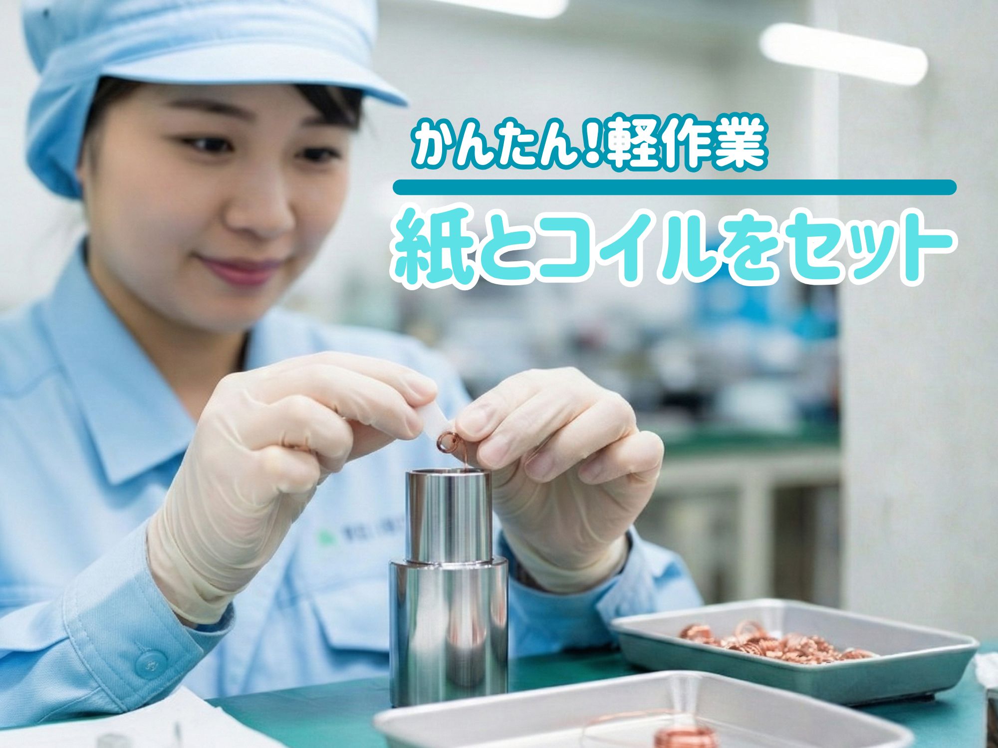 〈残業〉あり・なし選べる/土日祝休み・急な休みも柔軟に対応/「紙」と「コイル」を枠にセットするだけ♪