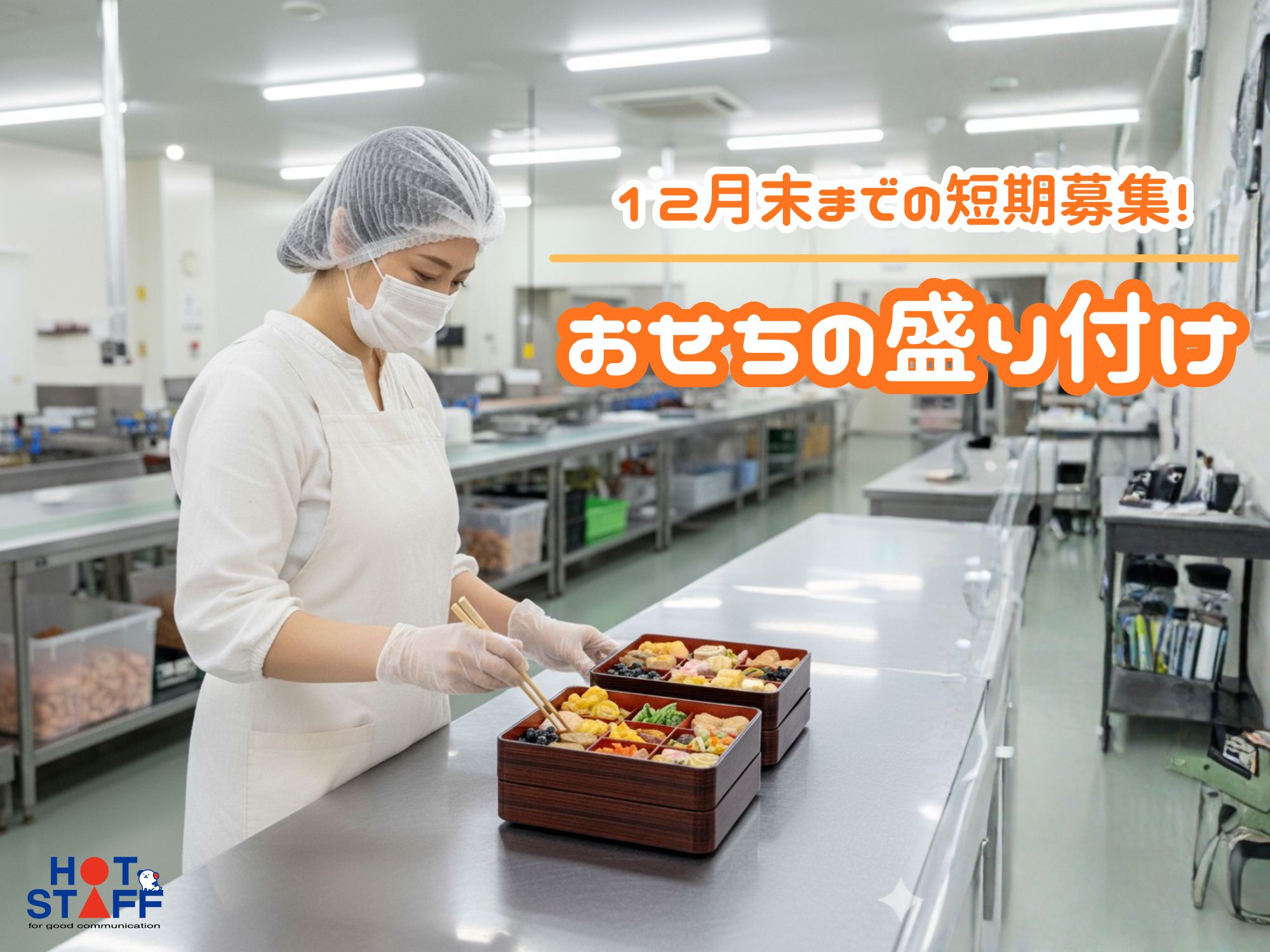 〈12月末までの短期!20名の大募集!〉土日祝休み週4日~OK/おせちの具材を重箱に詰めるだけ♪