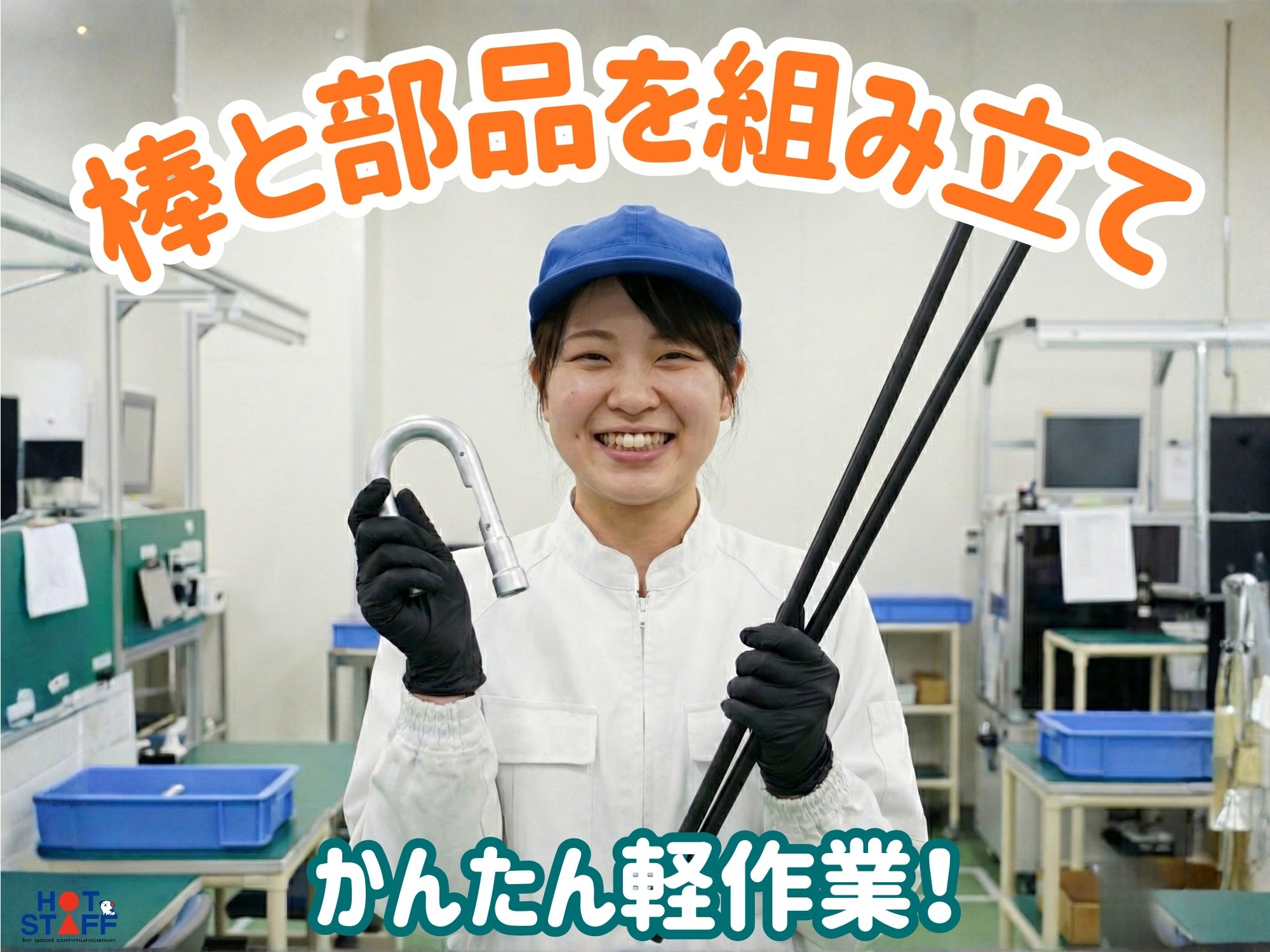 【飯塚市】土日休み・綺麗な工場/細長い棒2本と傘の持ち手のようなかる~い部品を機械でかんたん組立♪