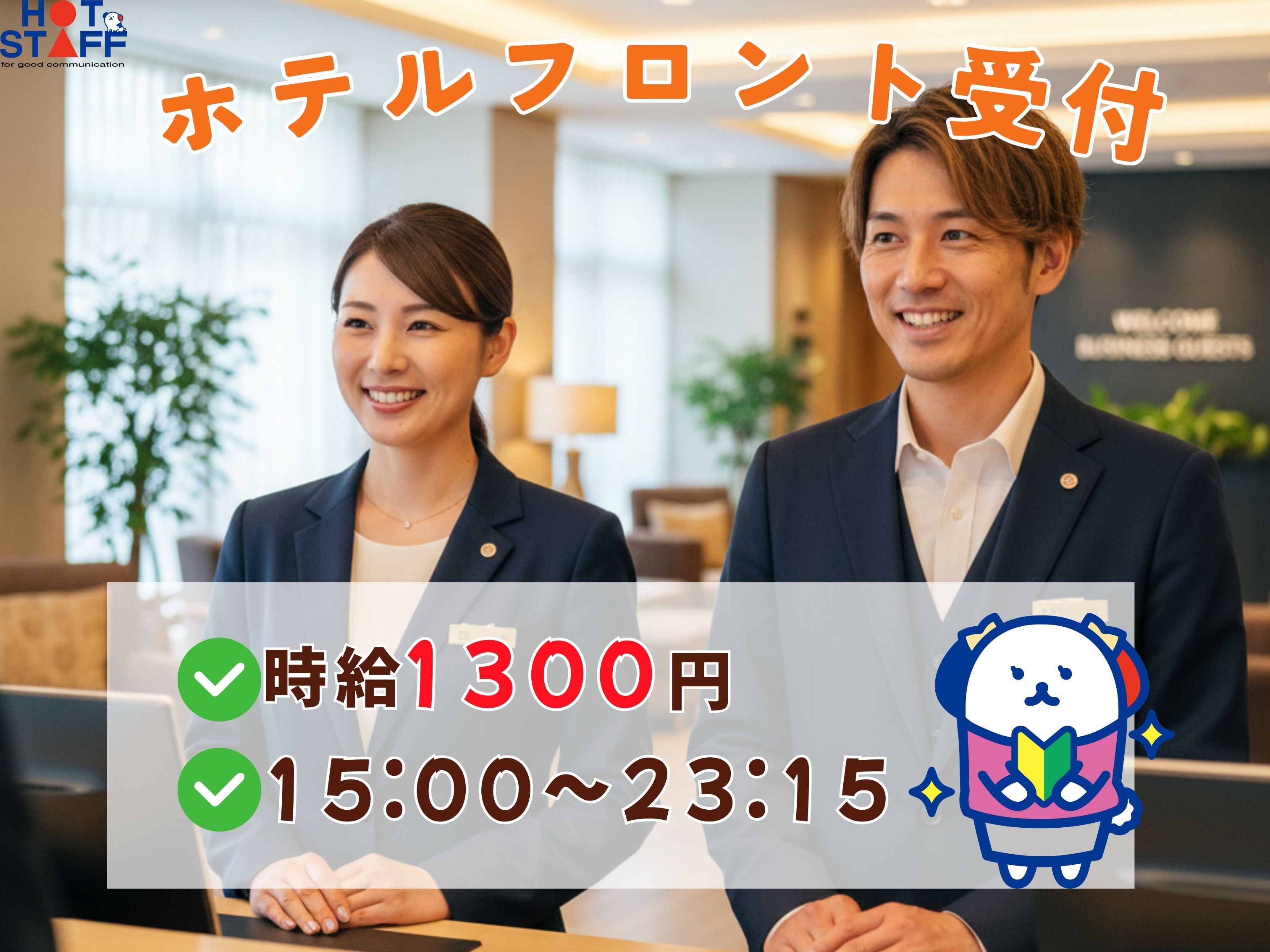 PC入力できればOK!高時給1300円×ゆっくり出勤/シフト制/ホテルフロント受付スタッフ〈門司区〉