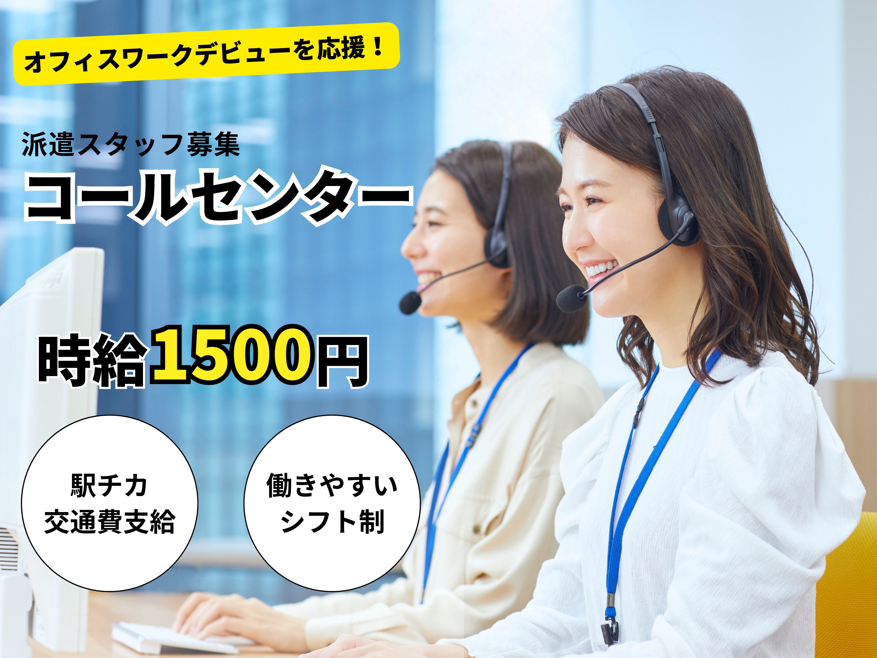 1/19開始【高時給1500円★コールセンター】シフト制・小倉駅チカで公共で通える◎髪色・ネイル・服装自由◎
