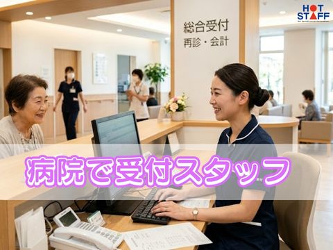 駅から徒歩5分!完全土日祝休みでプライベート充実◎病院で受付や事務のオシゴト!