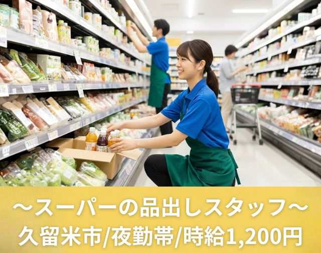 【夜勤専属】駅チカ・週3勤務・未経験OK◎接客ナシ!スーパーで商品を品出し♪〈久留米市〉