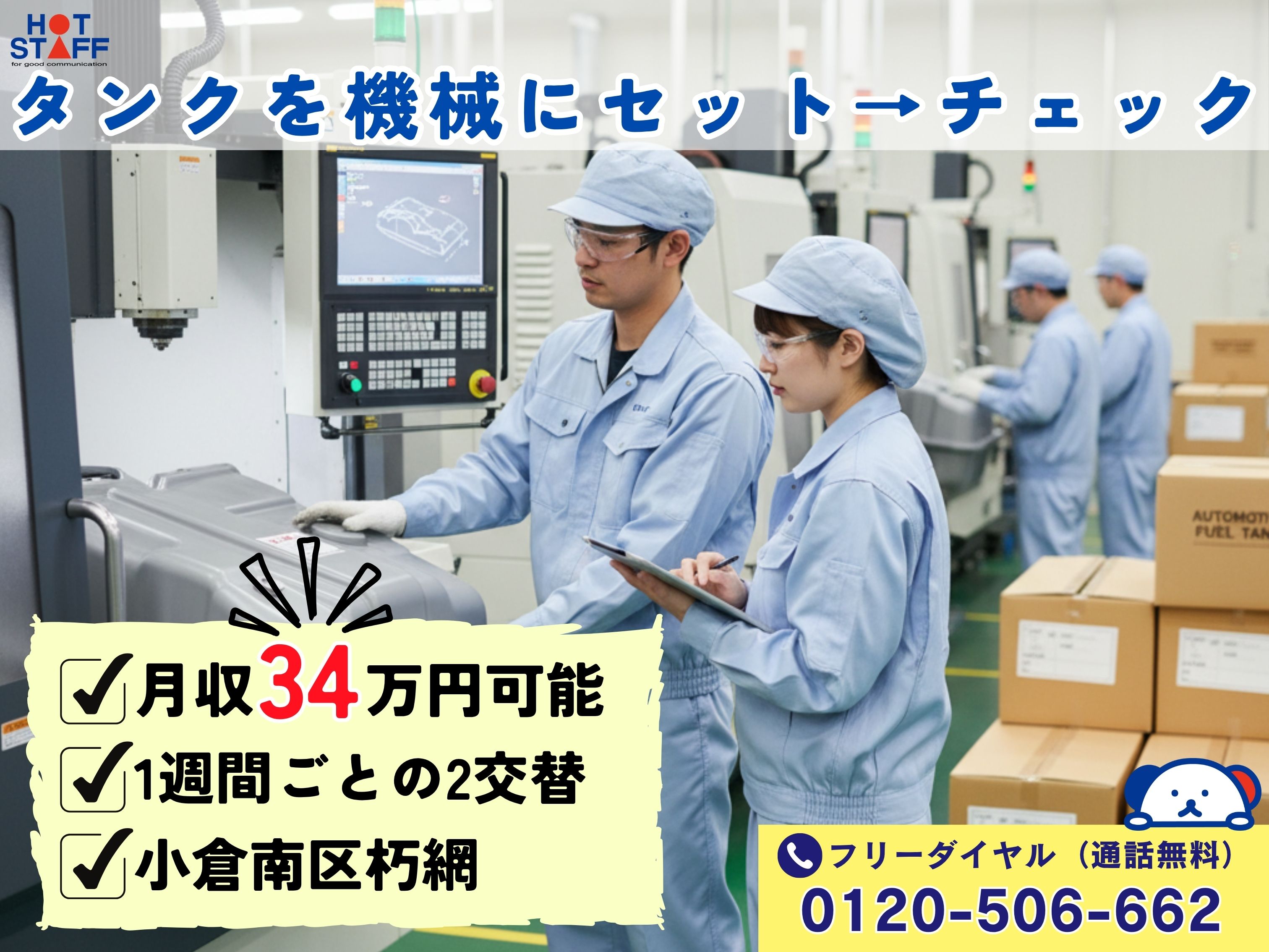 【月収34万円以上可能】土日休み/タンクを機械にセット→部品がきちんとついているかチェック!