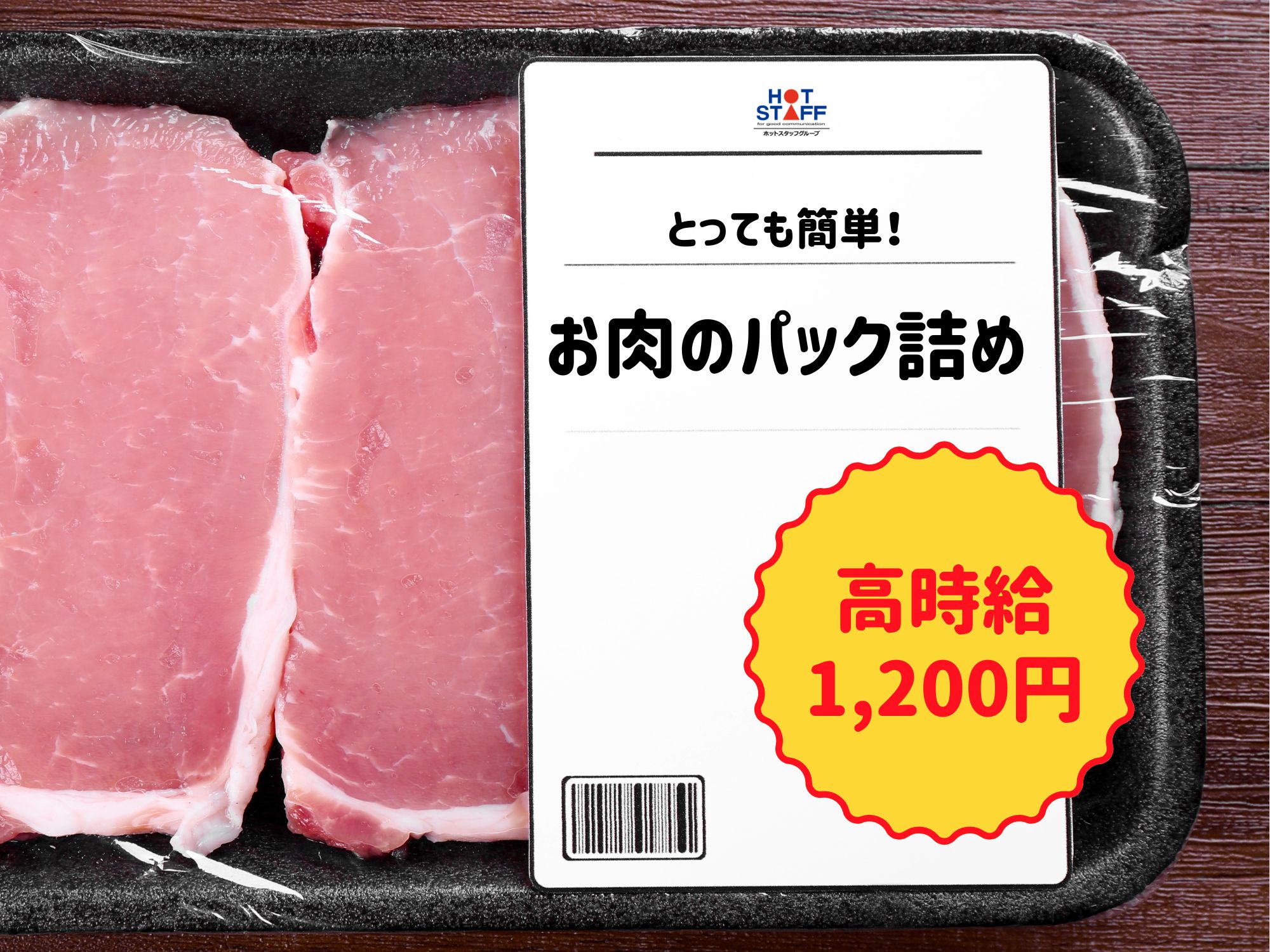 スキルや経験一切不要!機械から出てきたお肉をパックに詰めるだけ/簡単軽作業/日勤/時給1,200円