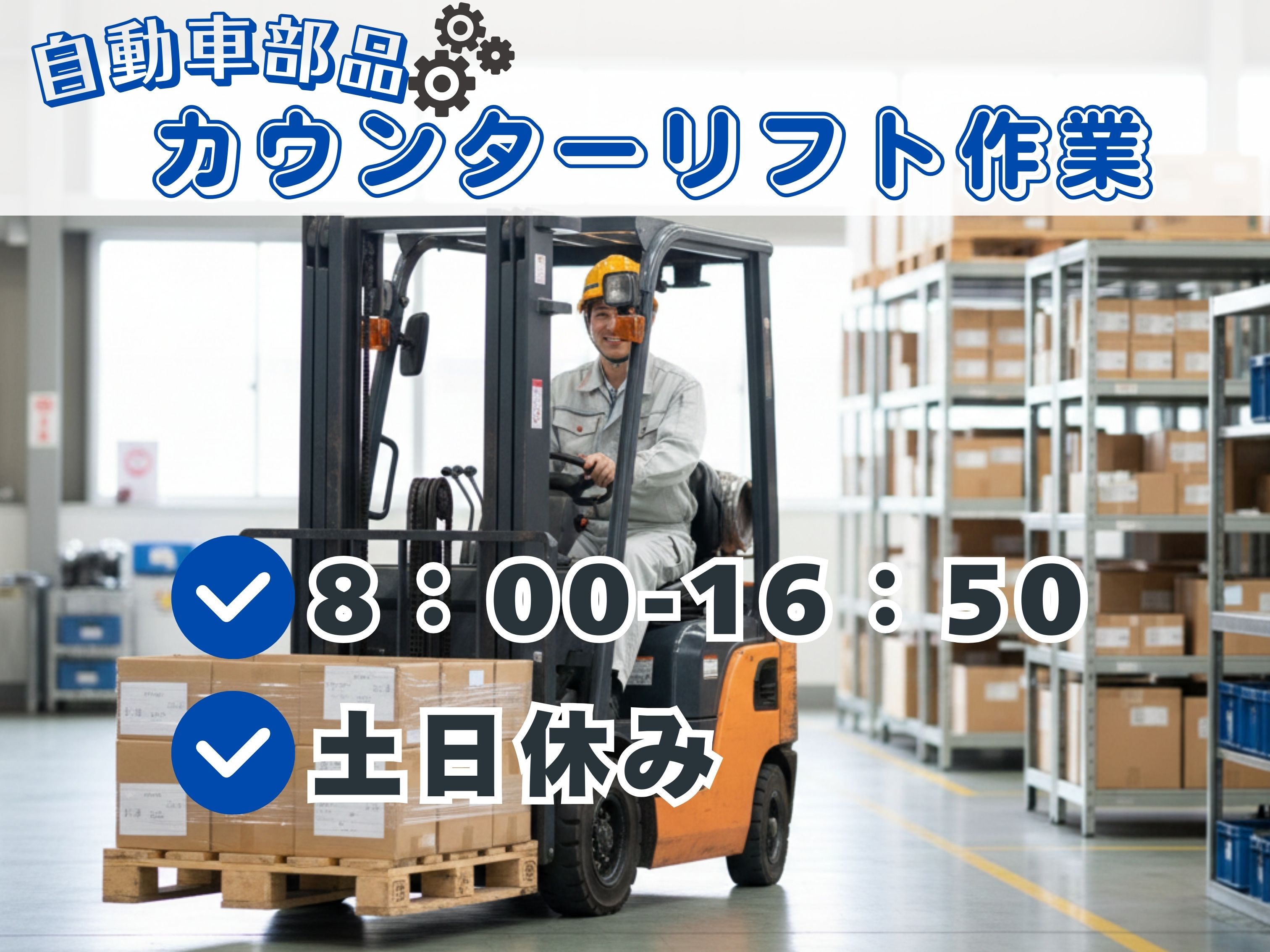 【乗車5割☆カウンターリフト】土日休み・残業なし!自動車部品の入出庫作業〈小倉南区〉