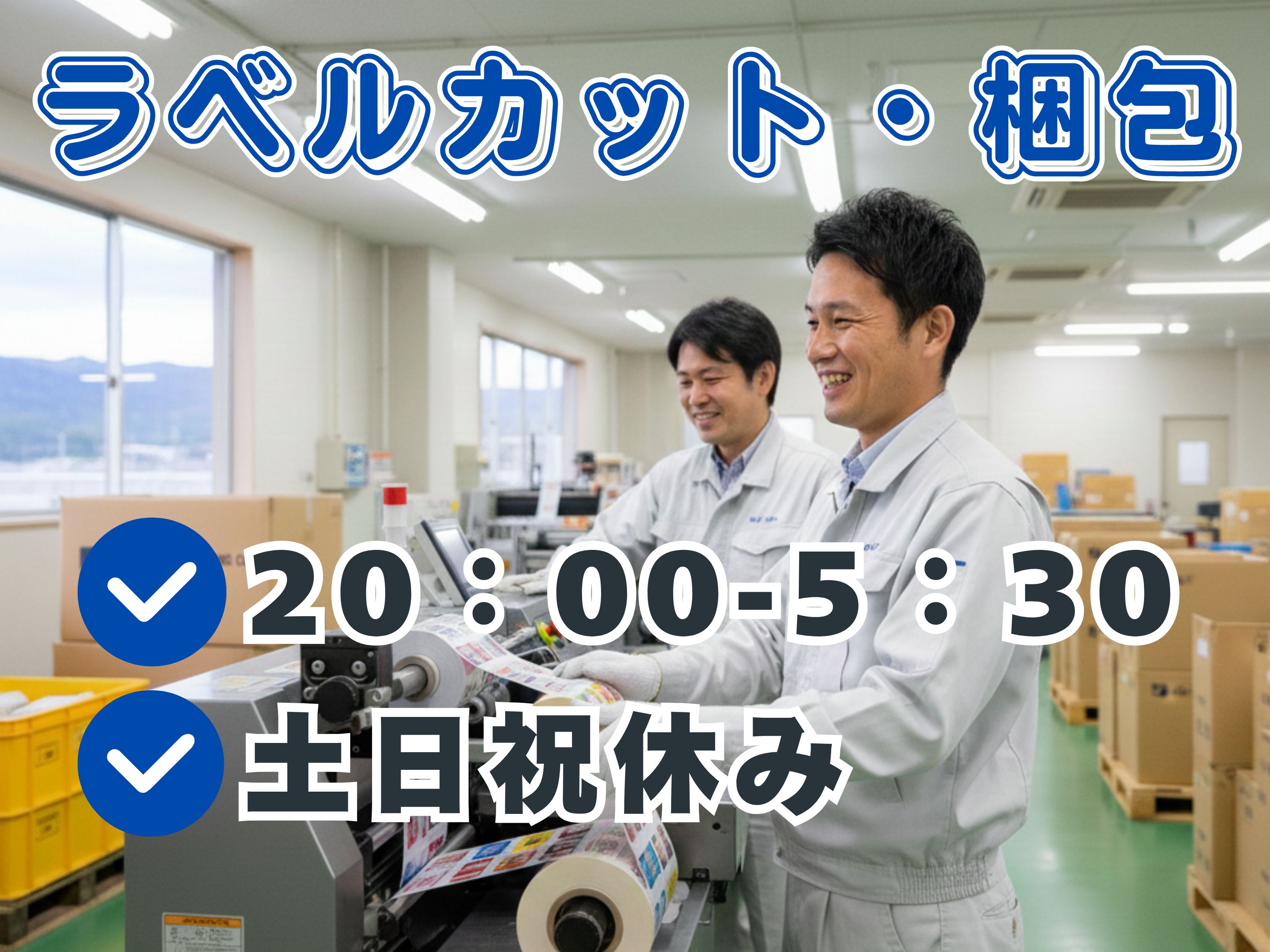 月収30万円以上★夜勤専属★土日祝休み/ラベルのカットや梱包作業スタッフ!〈門司区〉
