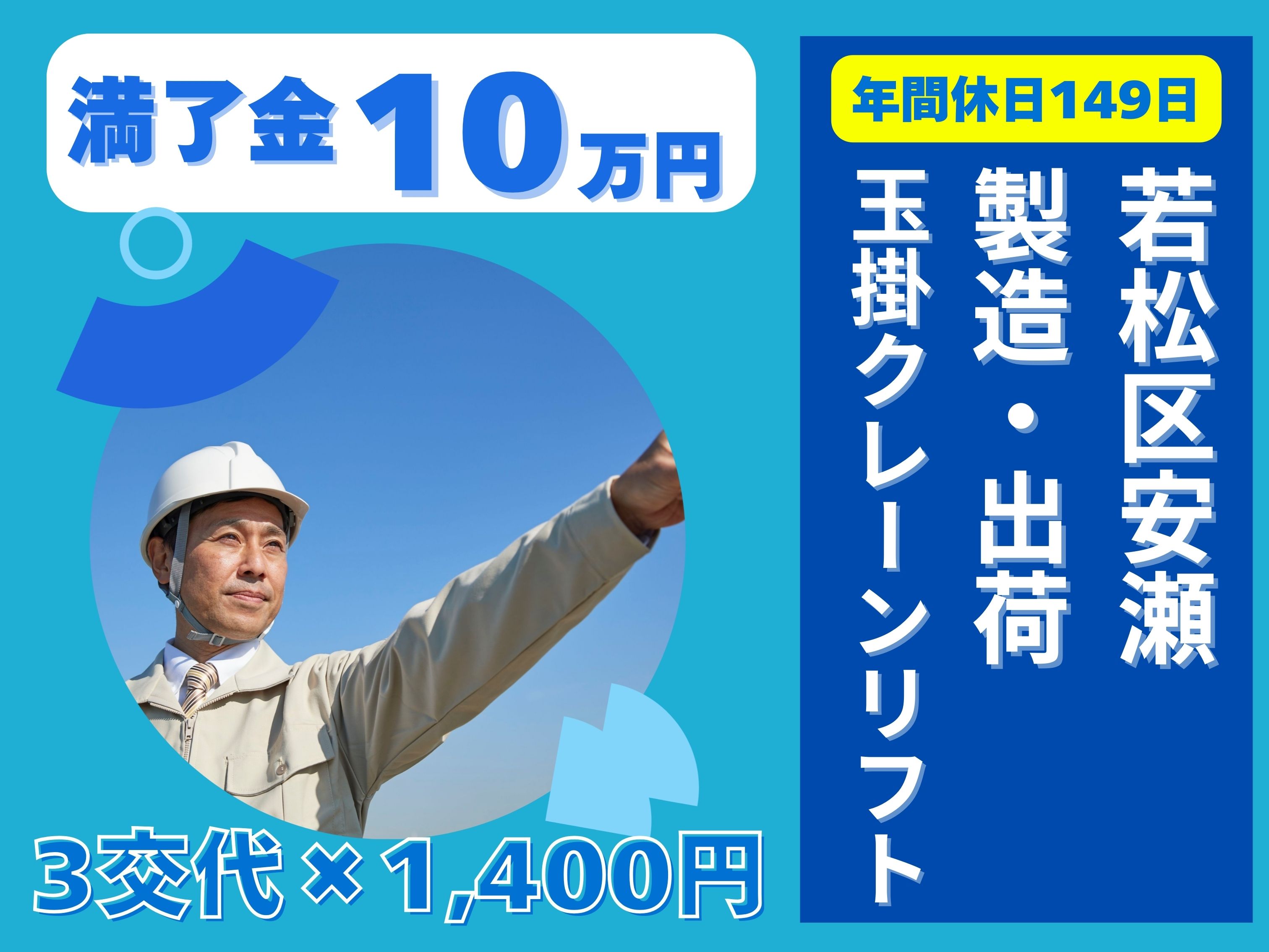 <若松区安瀬>3交替/月収23万円以上可・クレーンを使用して材料の投入やリフトで運搬作業