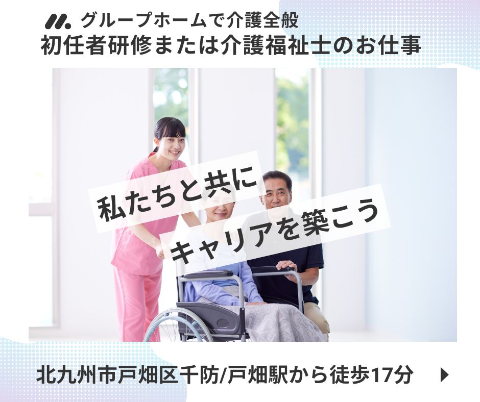 <戸畑区千防>3か月後に時給UP!グループホームで介護のお仕事・経験&初任者研修必須