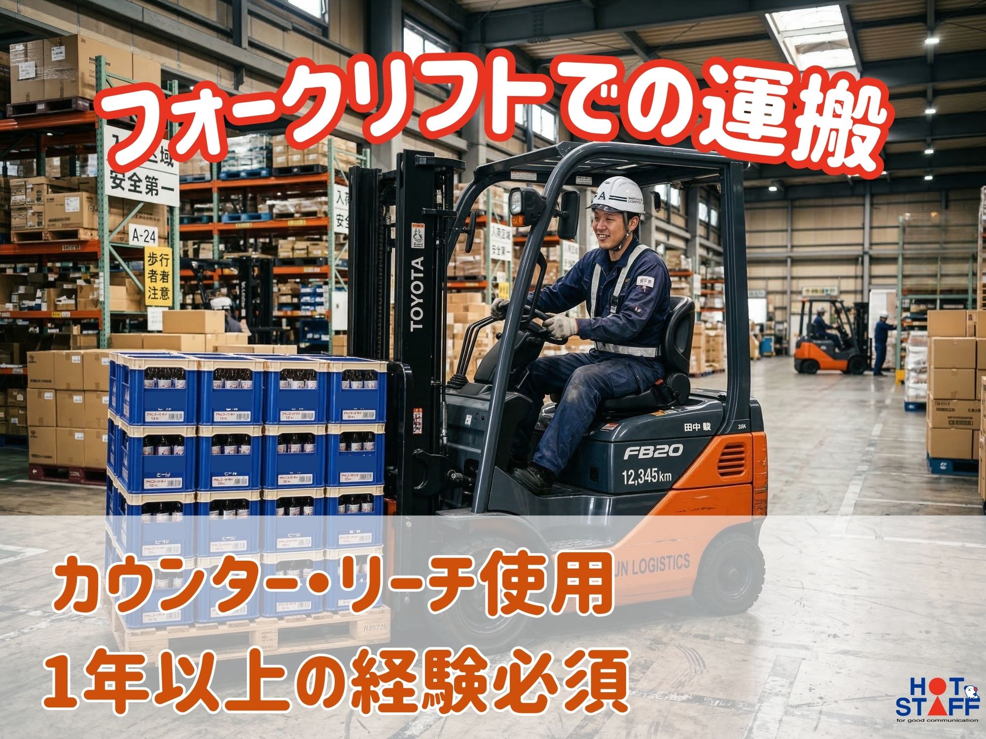 【経験が活かせる!】土日祝休み/高時給1,400円/「ビール飲料」を倉庫内へ運搬/リフト5割