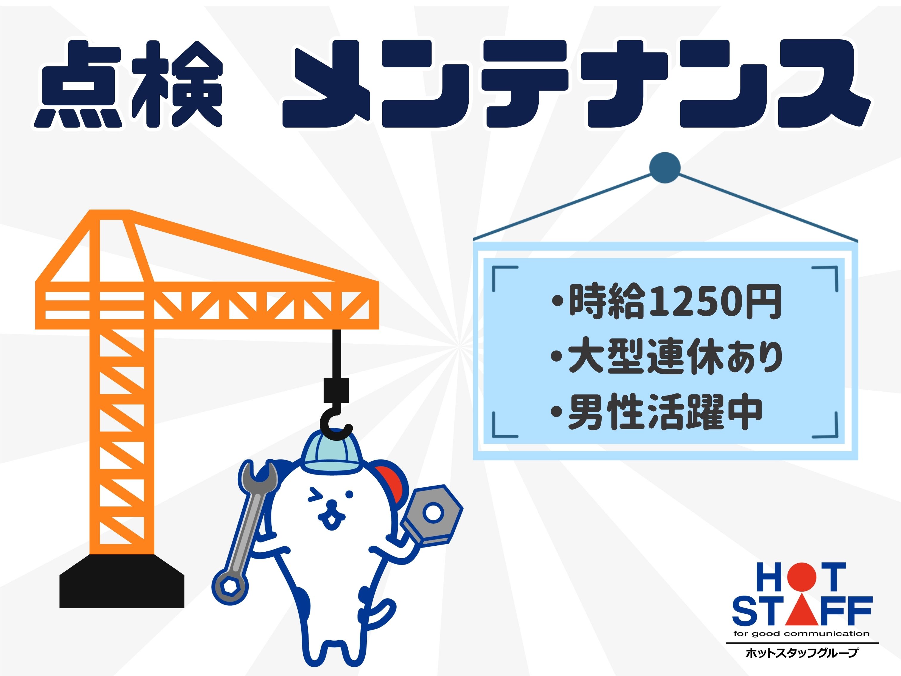 夕方は定時で即帰宅◎土曜は時給UPでしっかり稼げる!クレーン点検の補助スタッフ募集★【長崎市】