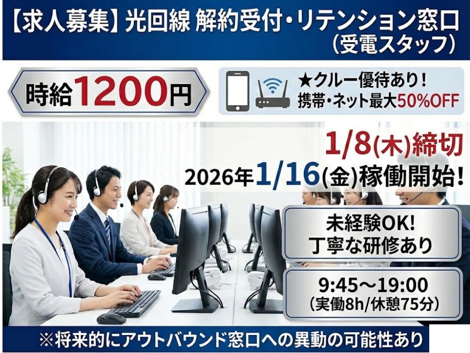 初心者歓迎のコールセンター/月収20万円以上可能/駅・バス停近くでラクラク通勤