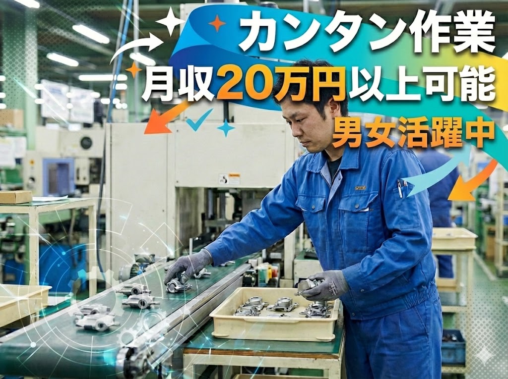手のひらサイズの部品をトレーに移すだけ!│土日休み&長期連休あり♪│三交代勤務でガッツリ稼げる★