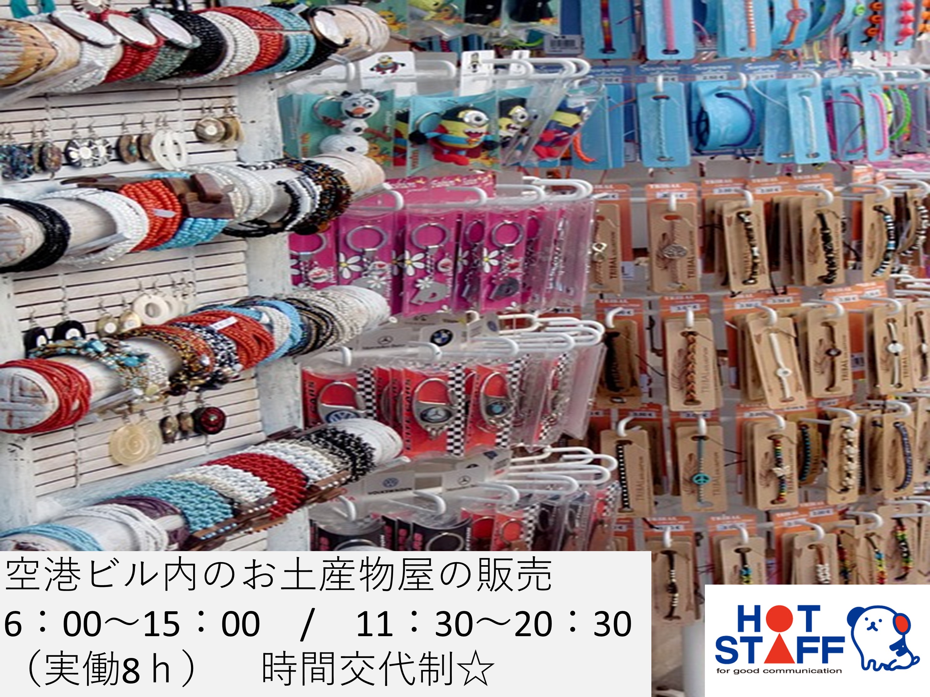 観光客でにぎわう空港内のお土産物店での接客販売員のお仕事で、