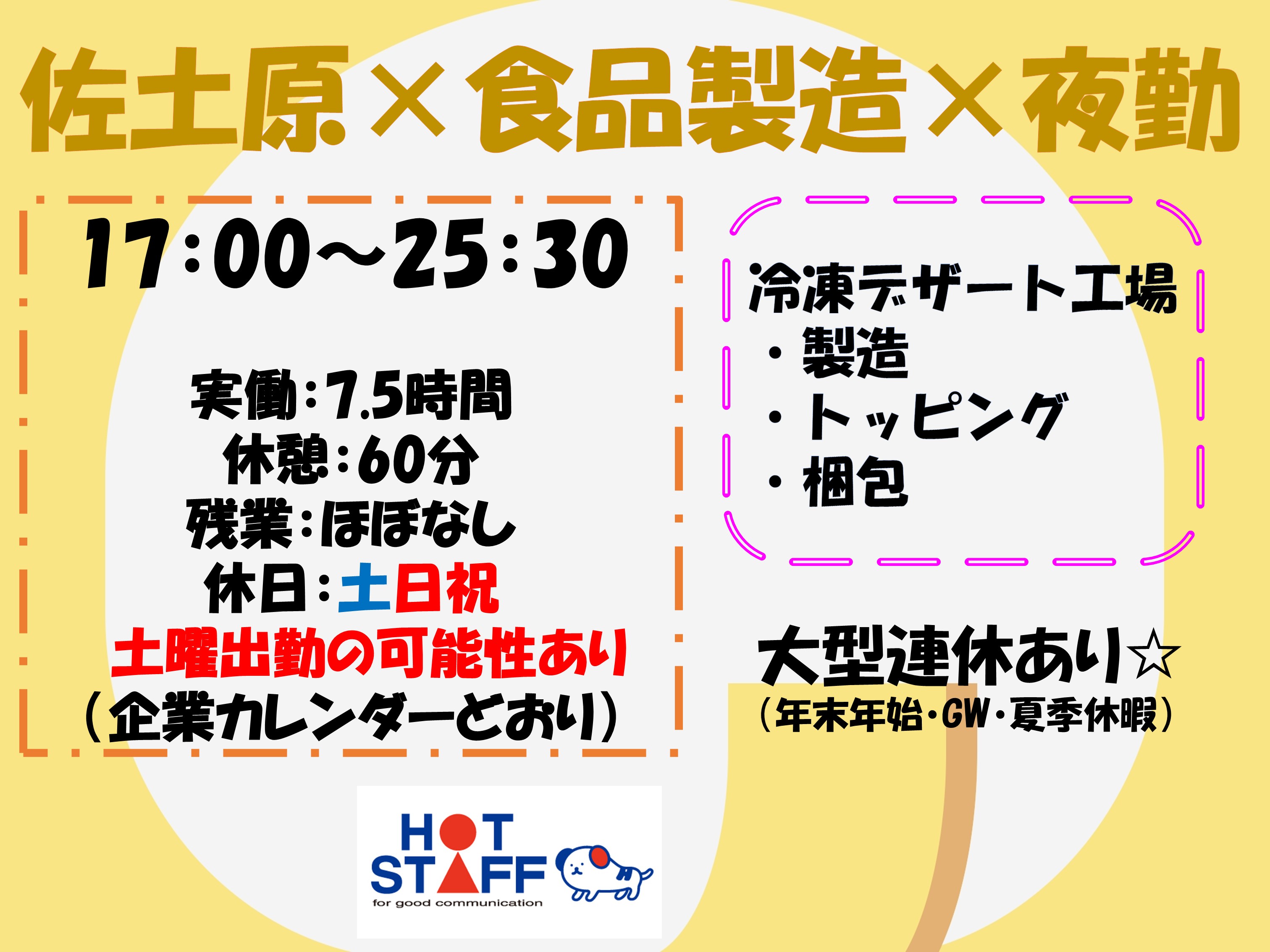 佐土原×土日祝休み/未経験OK!夜勤のお仕事☆ホットスタッフ宮崎からも多数在籍☆即日払いあり♪