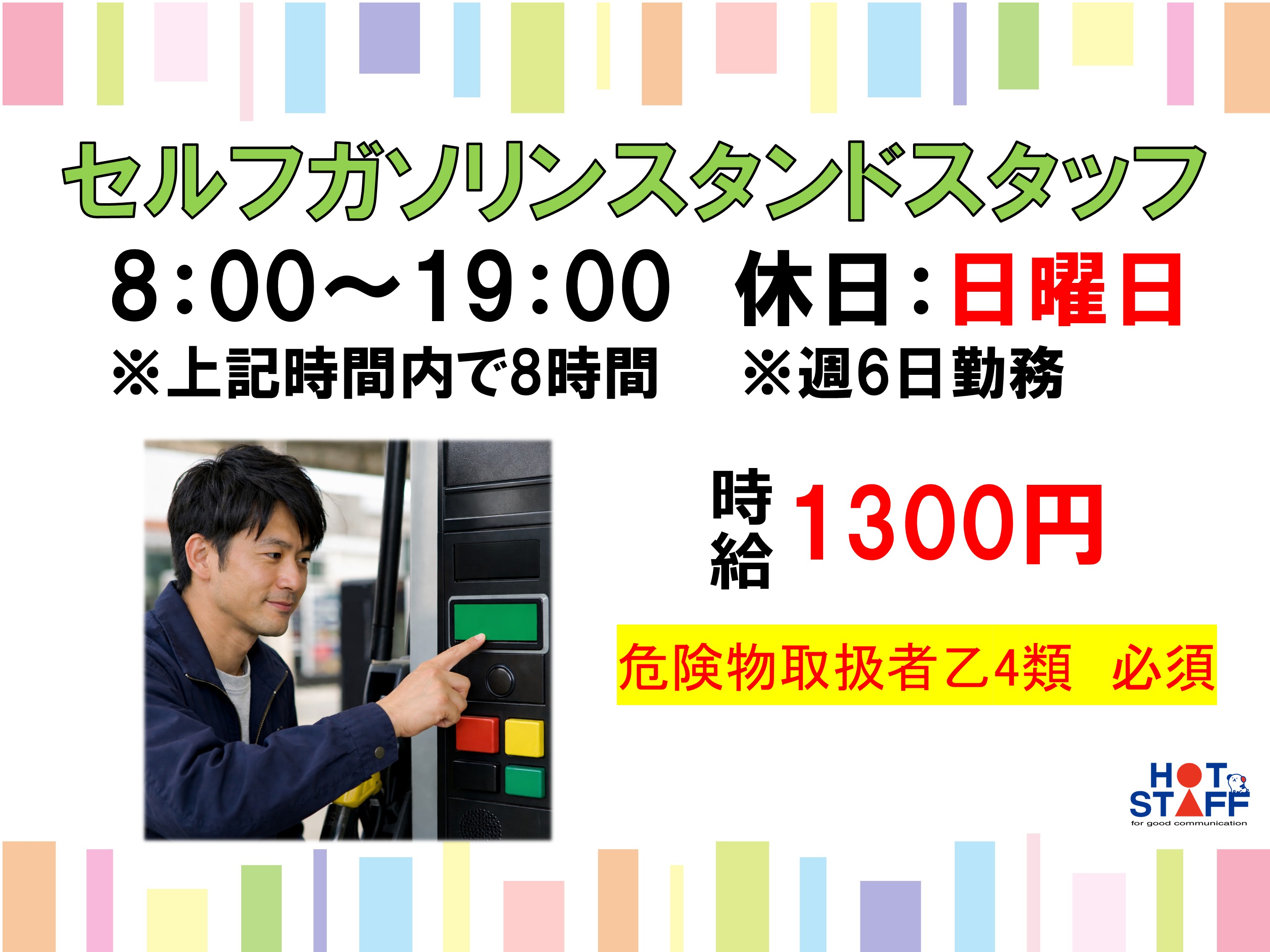 【2月中旬スタート】セルフガソリンスタンドスタッフ・資格を活かして高時給!日曜日休み☆